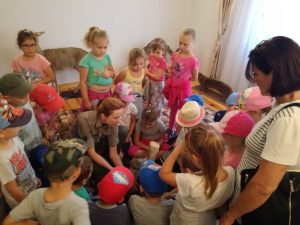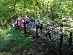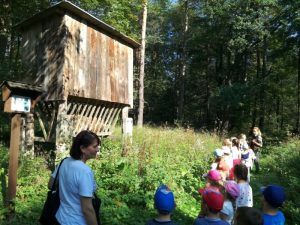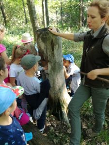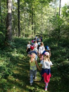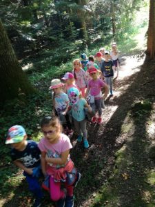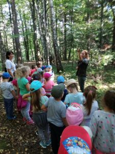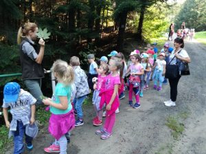 20.09.2018r. dla przedszkolaków był dniem pełnym wrażeń. Grupa maluchów oraz starszaków wybrała się na wycieczkę do Ośrodka Edukacji Ekologicznej ,,Hrendówka”- leśniczówka. Celem wizyty, było sprawdzenie, czy „pani Jesień” już zawitała do lasu oraz bezpośrednia obserwacja piękna otaczającej przyrody. Na miejscu na przedszkolaków czekała pani B. Kułak referent d/s. edukacji. Przedszkolaki wraz ze swoimi paniami i pracownikiem Nadleśnictwa Rymanów poszły na spacer wędrując ścieżką przyrodniczą poszukiwali śladów jesieni. Pani Basia opowiadała dzieciom ciekawostki przyrodnicze i pokazywała , czym różnią się poszczególne gatunki drzew, a także jak odróżnić drzewo liściaste od iglastego. Wycieczka taka – to obserwacja naturalnego ekosystemu świata roślin, zwierząt, oraz wspaniałe przeżycia dla dzieci. Maluchy poznawały przyrodę patrząc, słuchając i dotykając. Obserwowały las, który kryje w sobie wiele ciekawych tajemnic .Dzieci nauczyły się prawidłowego zachowania w lesie. Doświadczyły, że las to źródło świeżego powietrza.