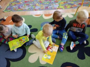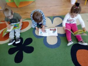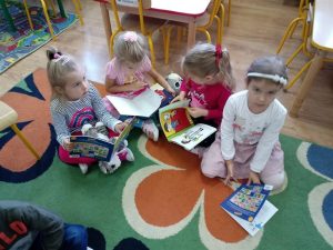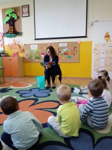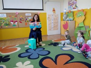 W tym dniu naszą grupę przedszkolną „Oa” odwiedziła pani Agnieszka z Gminnej Biblioteki w Zarszynie, w ramach ogólnopolskiego programu pt.„Klub Czytających Przedszkoli”. Celem spotkania było: zapoznanie z zawodem bibliotekarza, rozbudzenie zainteresowania książkami, rozwinięcie potrzeby chodzenia do biblioteki. Pani Agnieszka zwracała uwagę dzieci na poznawcze walory książek, sytuacje humorystyczne, kolorowe ilustracje, podkreśliła też, że warto czytać książki. Tym samym rozpoczęliśmy całoroczny cykl zajęć czytelniczych dla najmłodszych pt.„Z Kicią Kocią w przedszkolu”. Wszyscy przedszkolacy bardzo uważnie słuchali czytanej bajki, a na końcu zostali zaproszeni do biblioteki. Dzieci były bardzo zadowolone ze spotkania z panią bibliotekarz.
