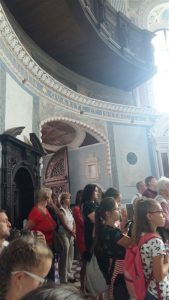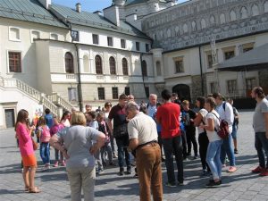 Jednym z zaplanowanych zadań do zrealizowania w projekcie pn.: „Przez stulecie pod wspólnym niebem. Zarszynianie – życie, praca i wiara” były odwiedziny kościoła, który – jak zarszyński – jest pod wezwaniem św. Marcina. Wybraliśmy rzymskokatolicki kościół parafialny w Krasiczynie należący do dekanatu Przemyśl i archidiecezji przemyskiej. O godz. 8.00, dziesiątego września pięćdziesięcioosobowa grupa złożona z uczniów, ich rodziców i babć oraz seniorów z DDS+, przedstawicielek KGW w Zarszynie, nauczycieli, a także członków Stowarzyszenia INICJATYWA rozpoczęła wspólną wycieczkę.