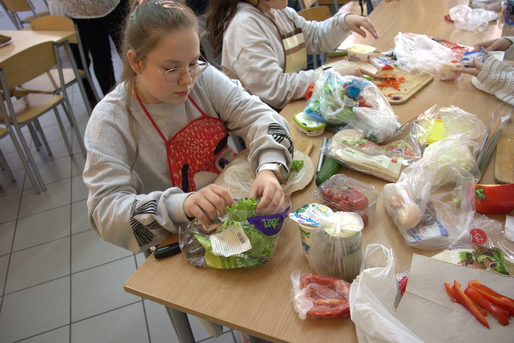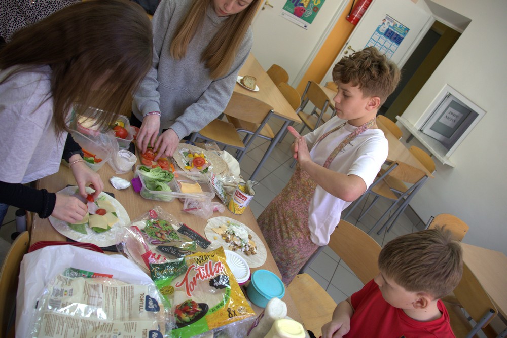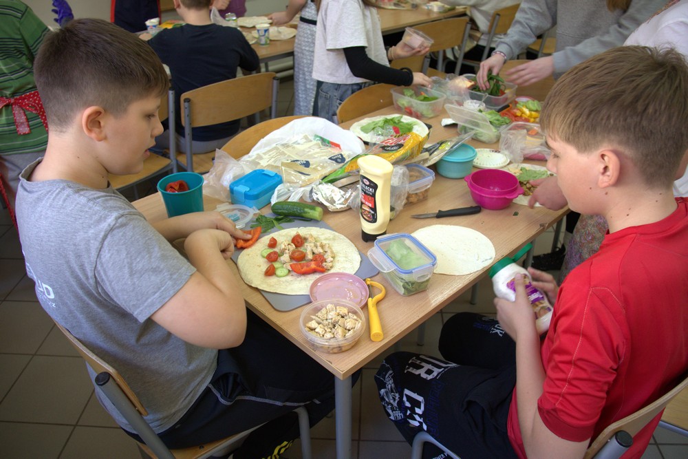 W ramach edukacji prozdrowotnej 20 marca uczniowie klasy V wykonali plakaty promujące zdrowy styl życia, a na zajęciach techniki przygotowali pełne witamin i składników odżywczych, kolorowe kanapki i tortille.