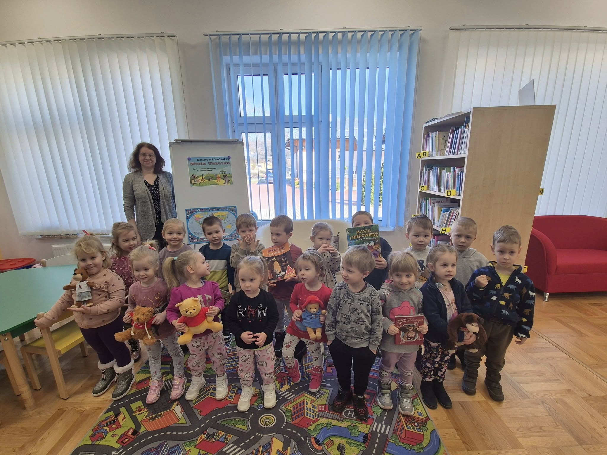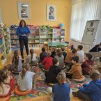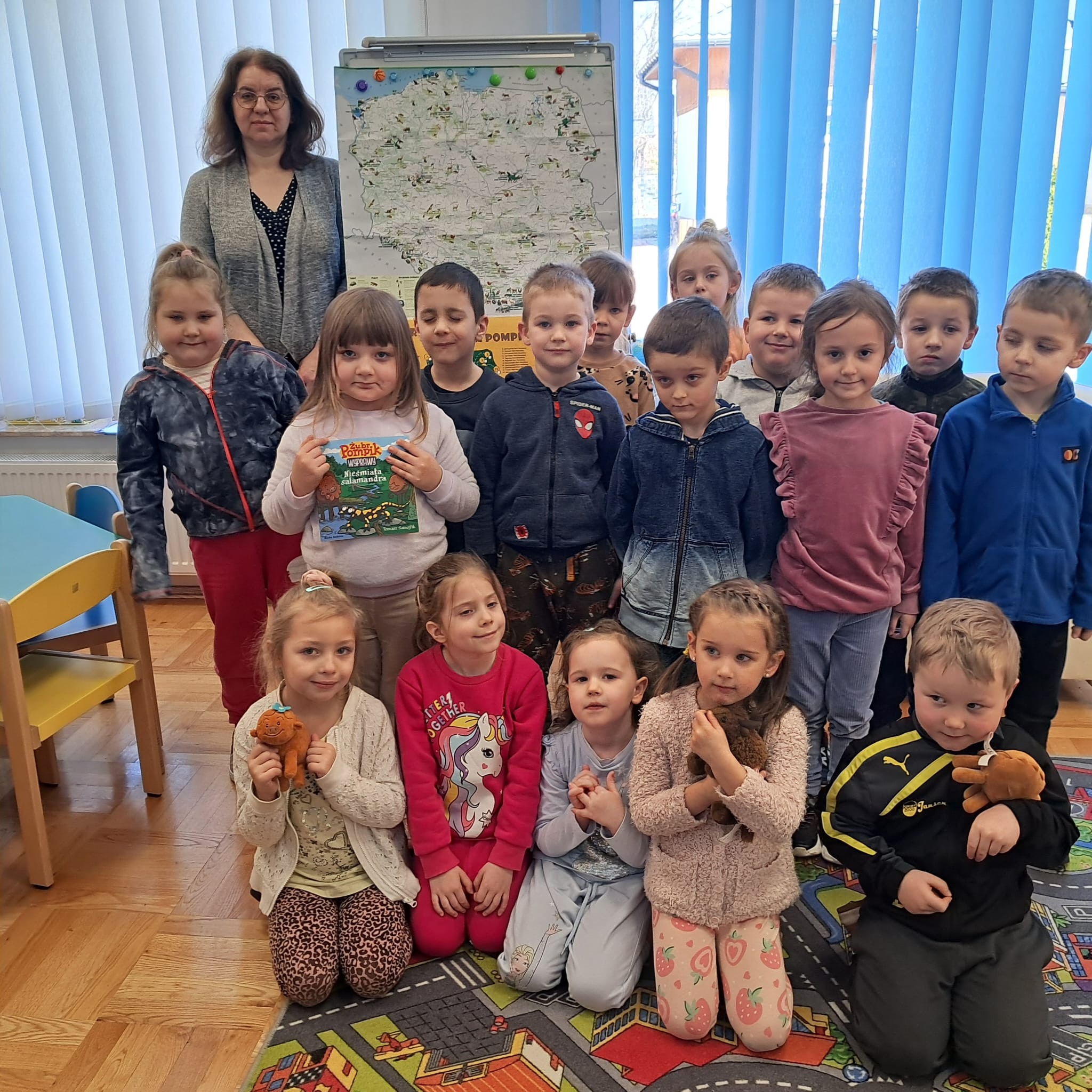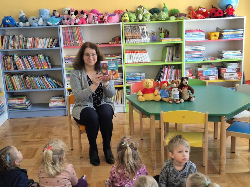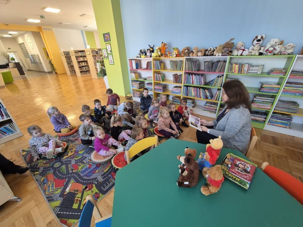 W dniu 19.03.2025r. odbyły się zajęcia czytelnicze w Gminna Biblioteka Publiczna w Zarszynie. Tym razem dzieci z oddziału przedszkolnego 0b miały możliwość zapoznać się z książką pt.: „Nieśmiała salamandra” i podróżować po Górczańskim Parku Narodowym w ramach cyklu „Podróże Żubra Pompika”. Natomiast maluszki z oddziału przedszkolnego 0a poznały kolejnego bohatera Niedźwiedzia – oraz wysłuchały bajeczkę pt. „Bajeczki Maszy” w ramach cyklu „Bajkowi koledzy Misia Uszatka”. Dziękujemy Pani Agnieszce za kolejne ciekawe zajęcia oraz serduszka dla dzieci.