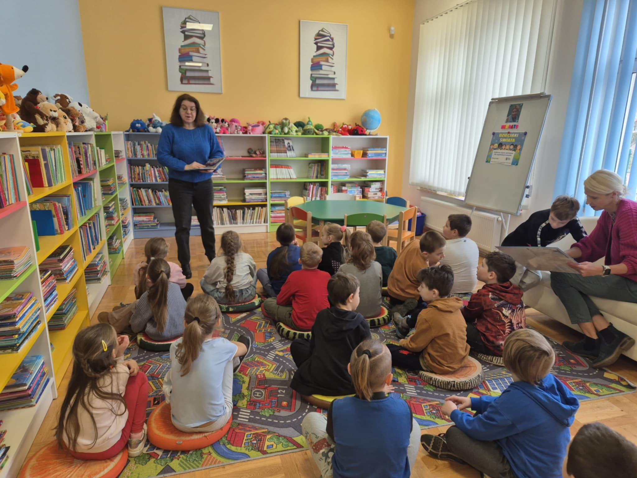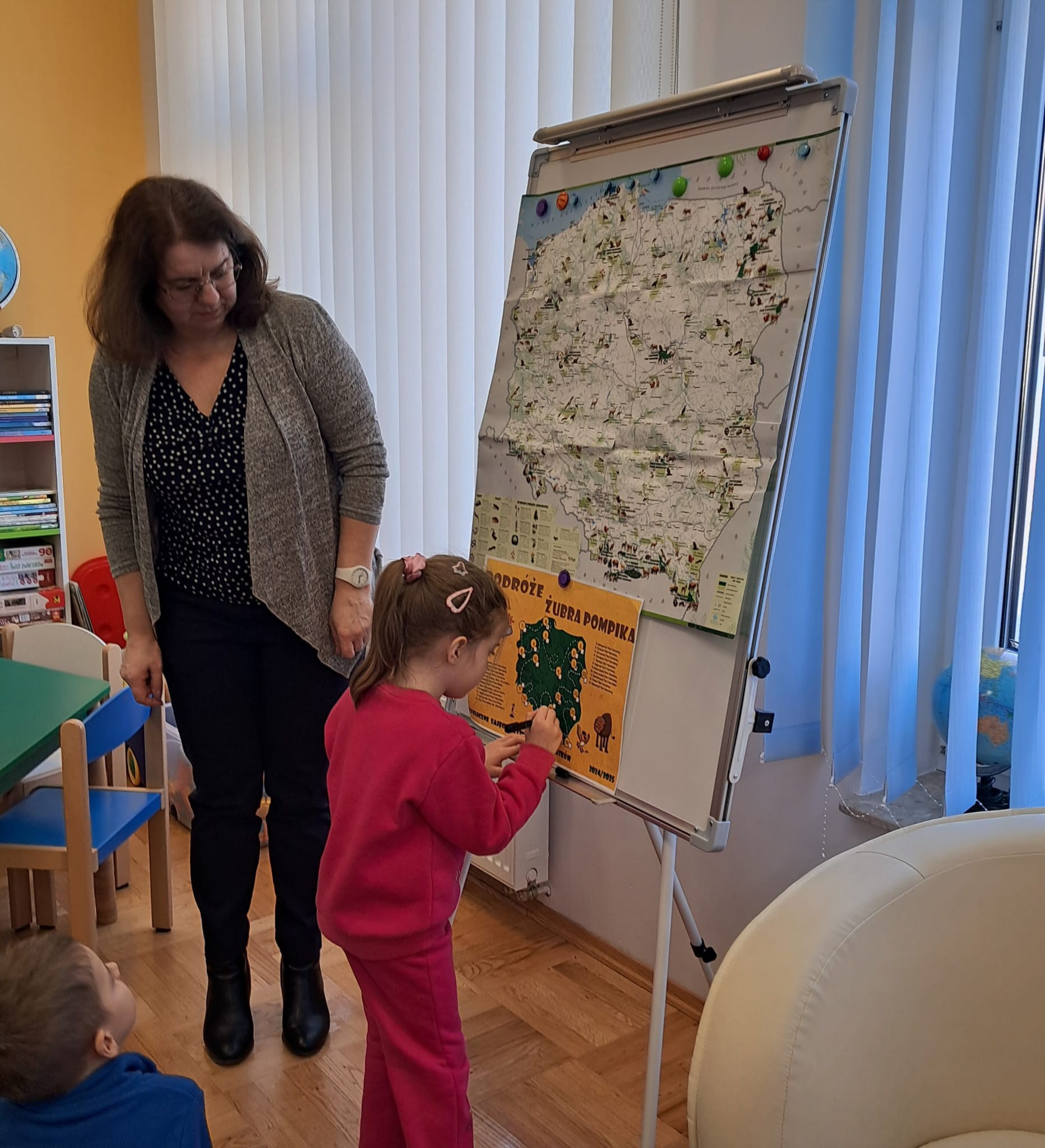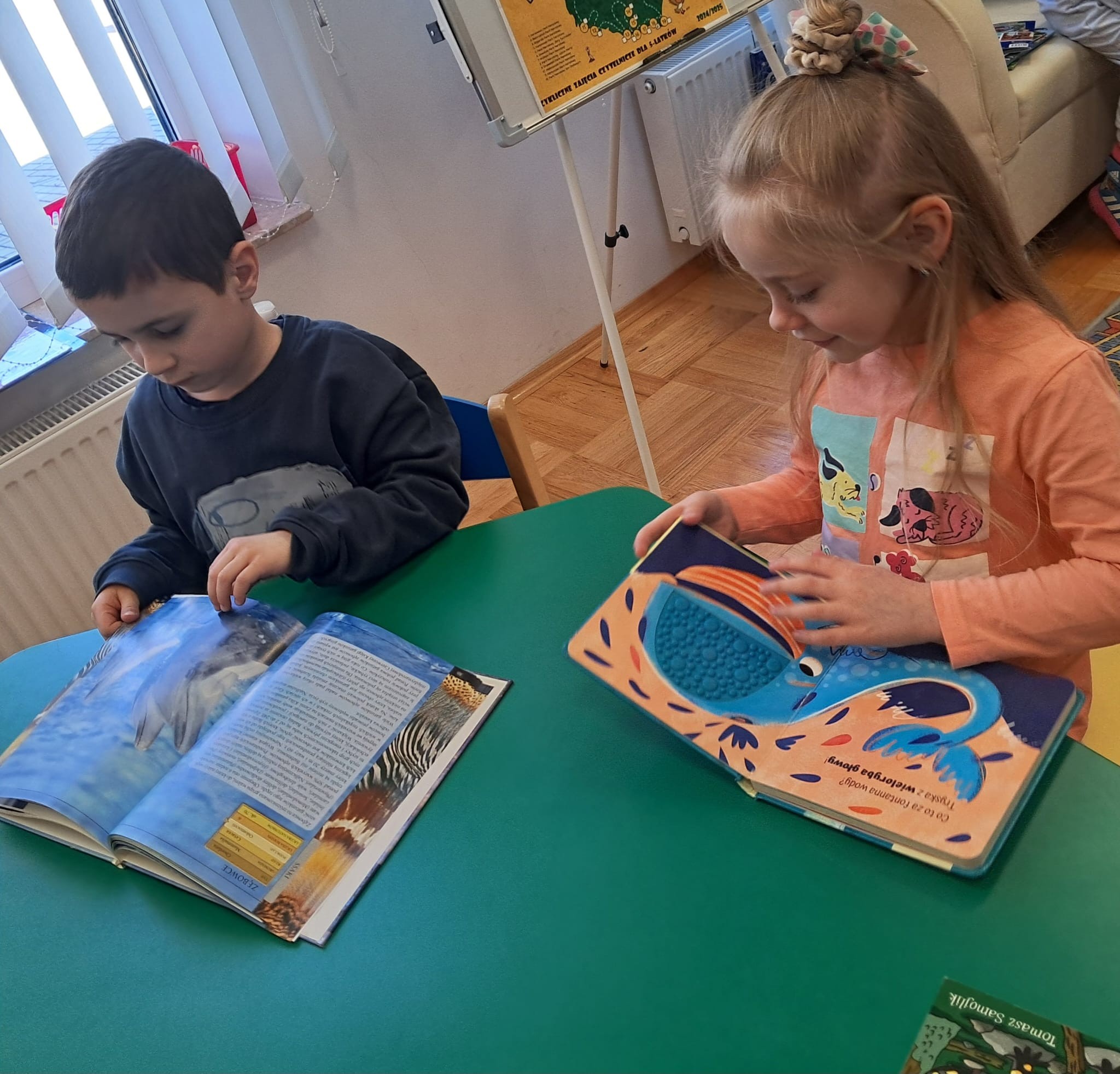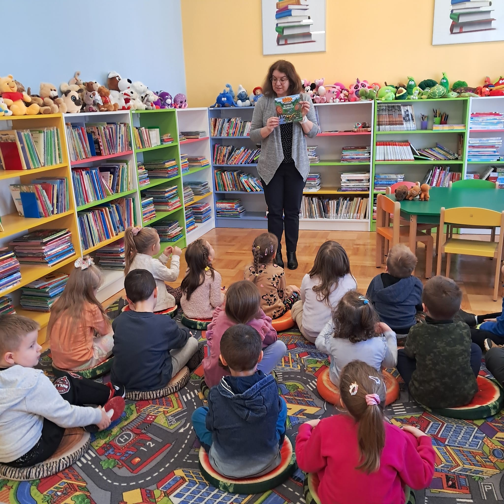 W dniu 19.03.2025r. odbyły się zajęcia czytelnicze w Gminna Biblioteka Publiczna w Zarszynie. Tym razem dzieci z oddziału przedszkolnego 0b miały możliwość zapoznać się z książką pt.: „Nieśmiała salamandra” i podróżować po Górczańskim Parku Narodowym w ramach cyklu „Podróże Żubra Pompika”. Natomiast maluszki z oddziału przedszkolnego 0a poznały kolejnego bohatera Niedźwiedzia – oraz wysłuchały bajeczkę pt. „Bajeczki Maszy” w ramach cyklu „Bajkowi koledzy Misia Uszatka”. Dziękujemy Pani Agnieszce za kolejne ciekawe zajęcia oraz serduszka dla dzieci.