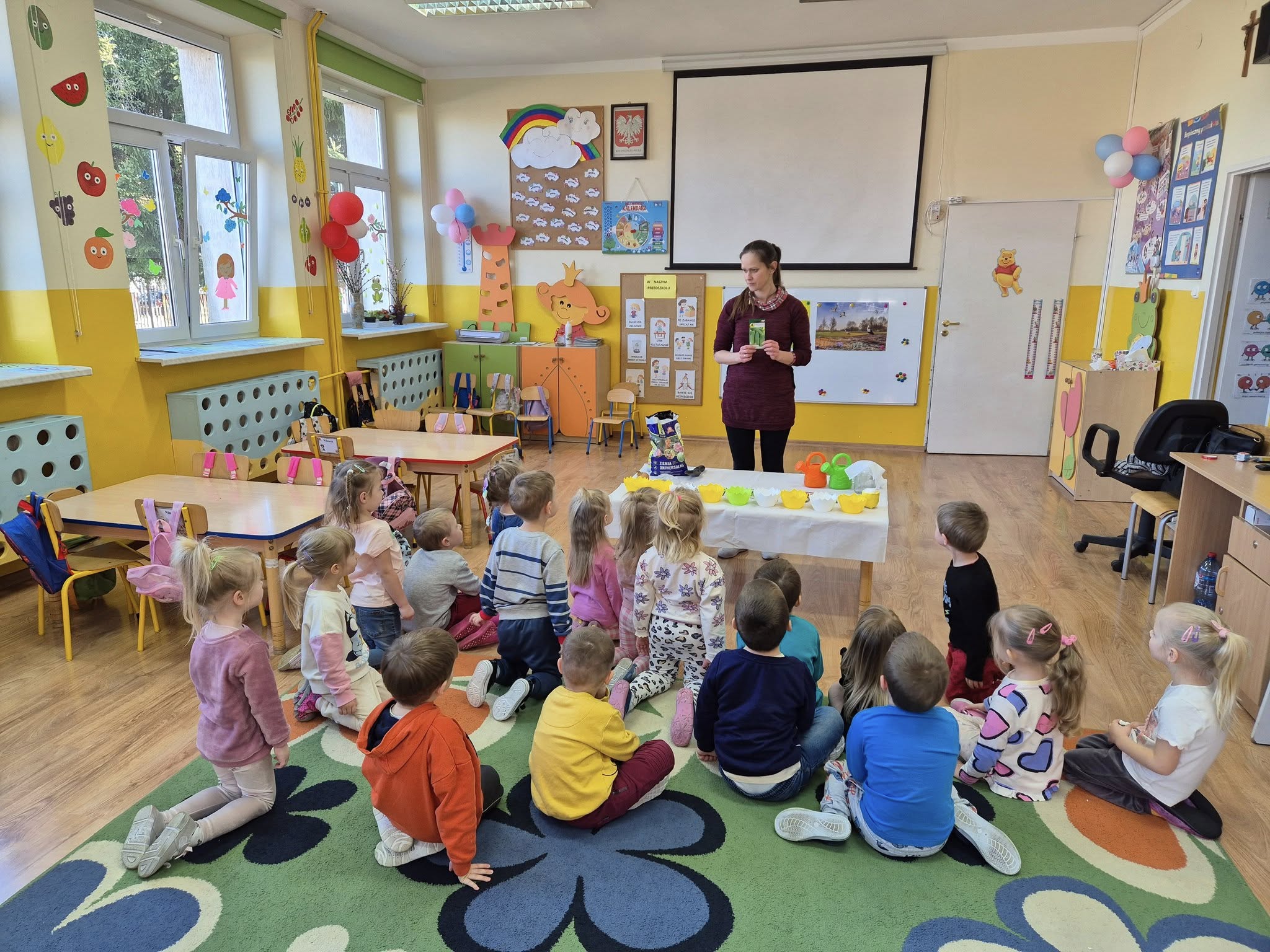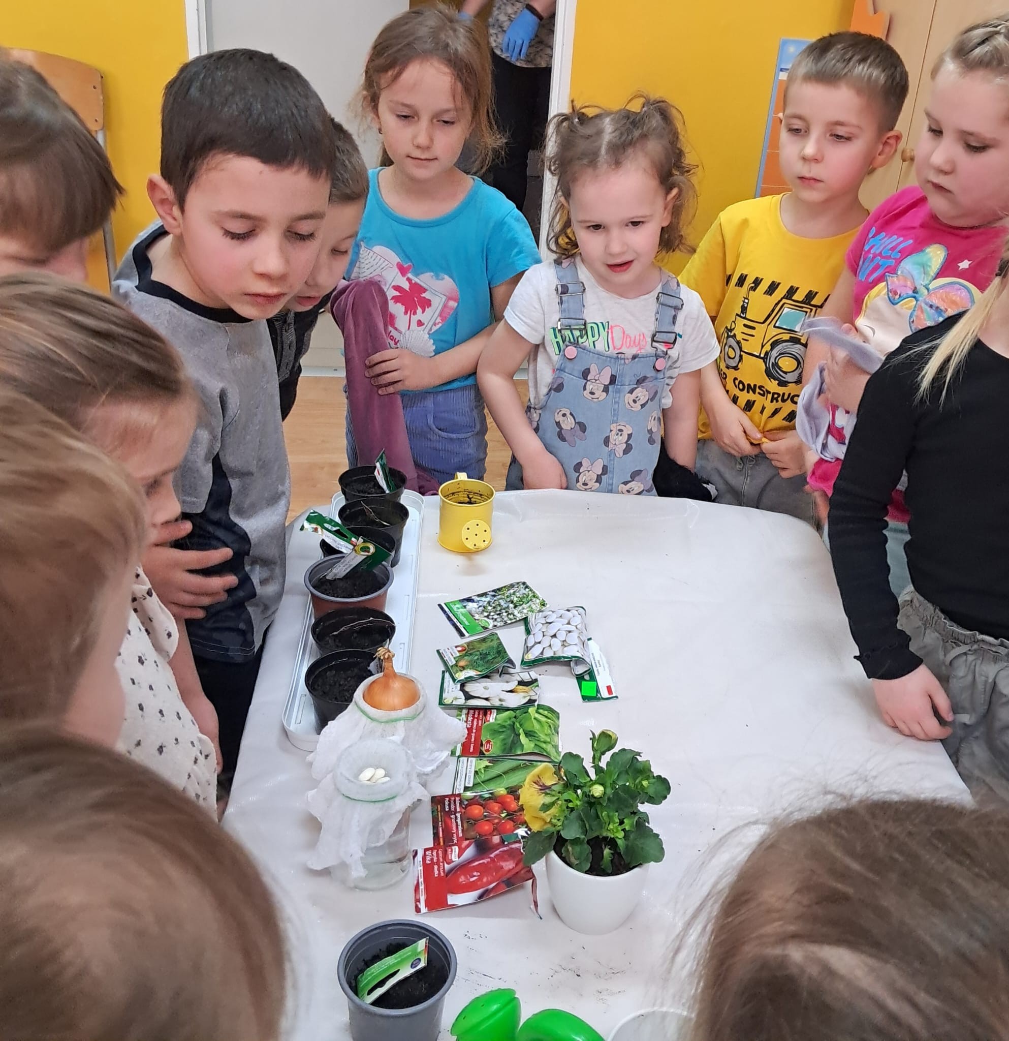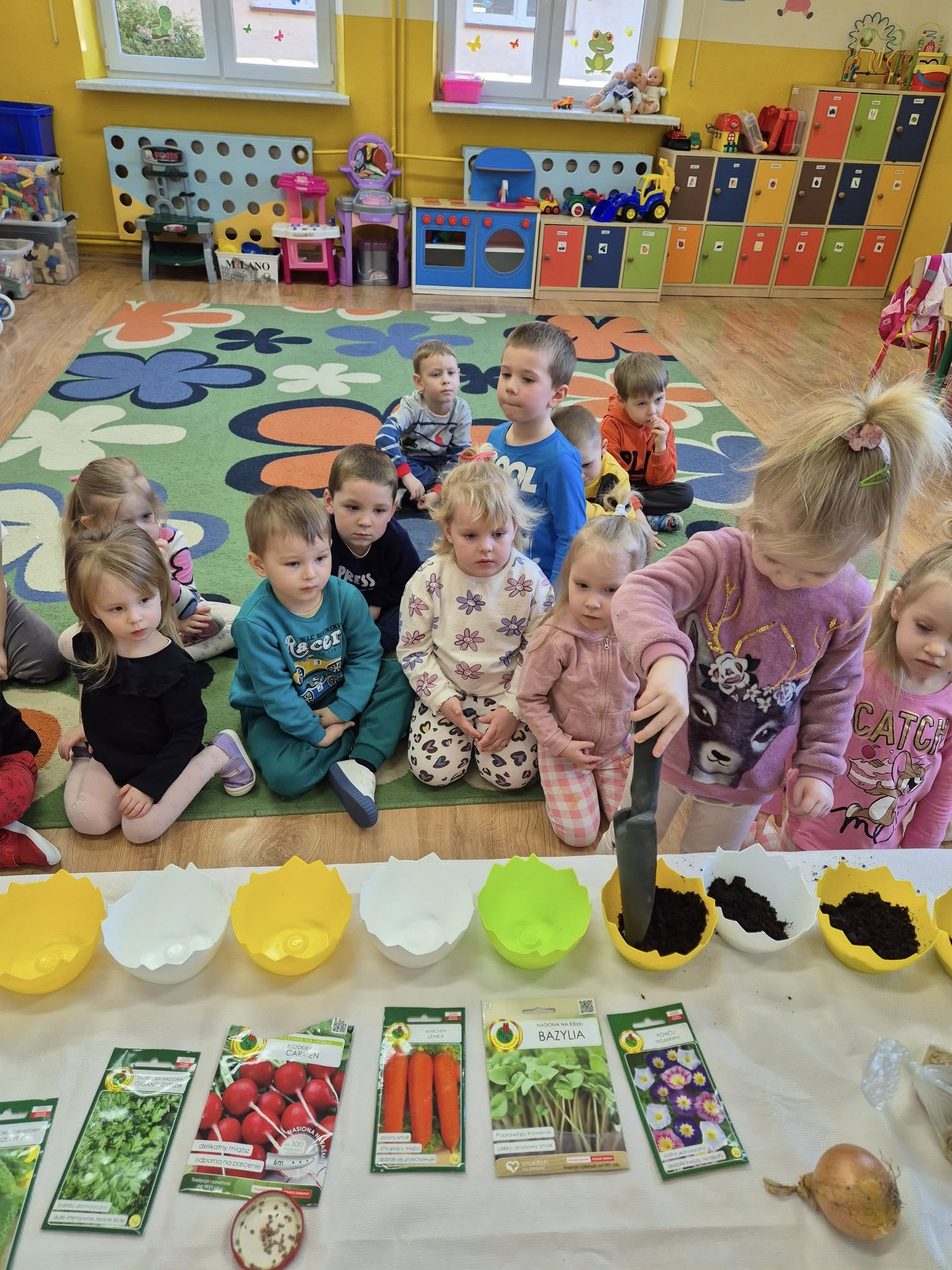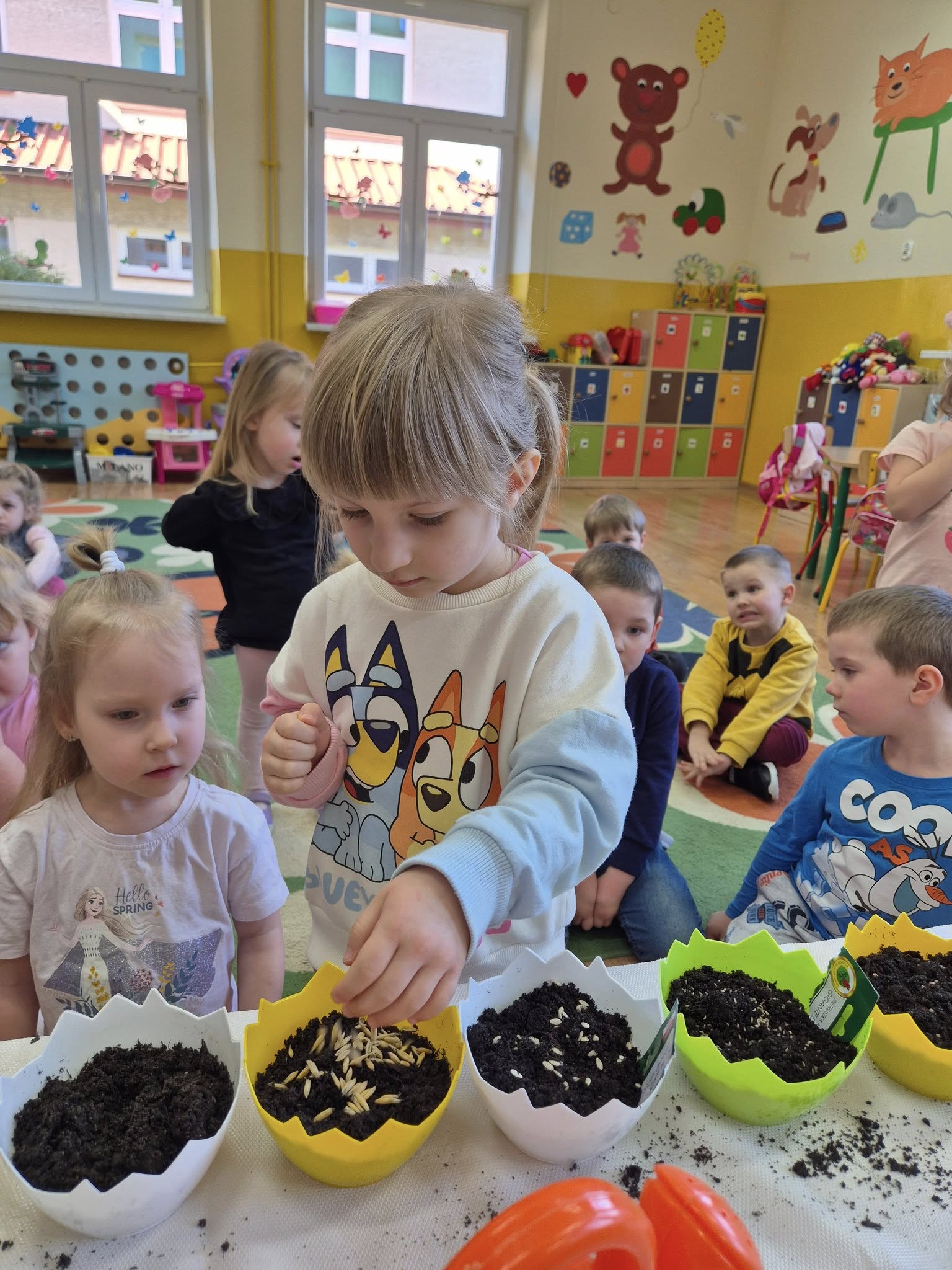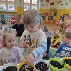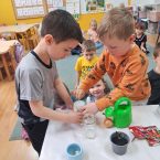 W dniu 20.03.2025r. dzieci z oddziału przedszkolnego 0a i 0b założyły wiosenne kąciki przyrody. Najpierw dzieci dowiedziały się, jakich warunków rośliny potrzebują do tego, aby mogły rosnąć. Następnie zasiały rzeżuchę, szczypiorek, pietruszkę oraz założyły hodowlę fasoli i zasadziły cebulę. Każdego dnia będą obserwować i podlewać swoje roślinki. Samodzielne sadzenie i sianie roślinek jest bardzo cennym doświadczeniem dla przedszkolaków. Uczą się nie tylko etapów sadzenia, ale także kształtują poczucie odpowiedzialności oraz mają szansę na obserwację zmian, jakie zachodzą w ich roślinkach.