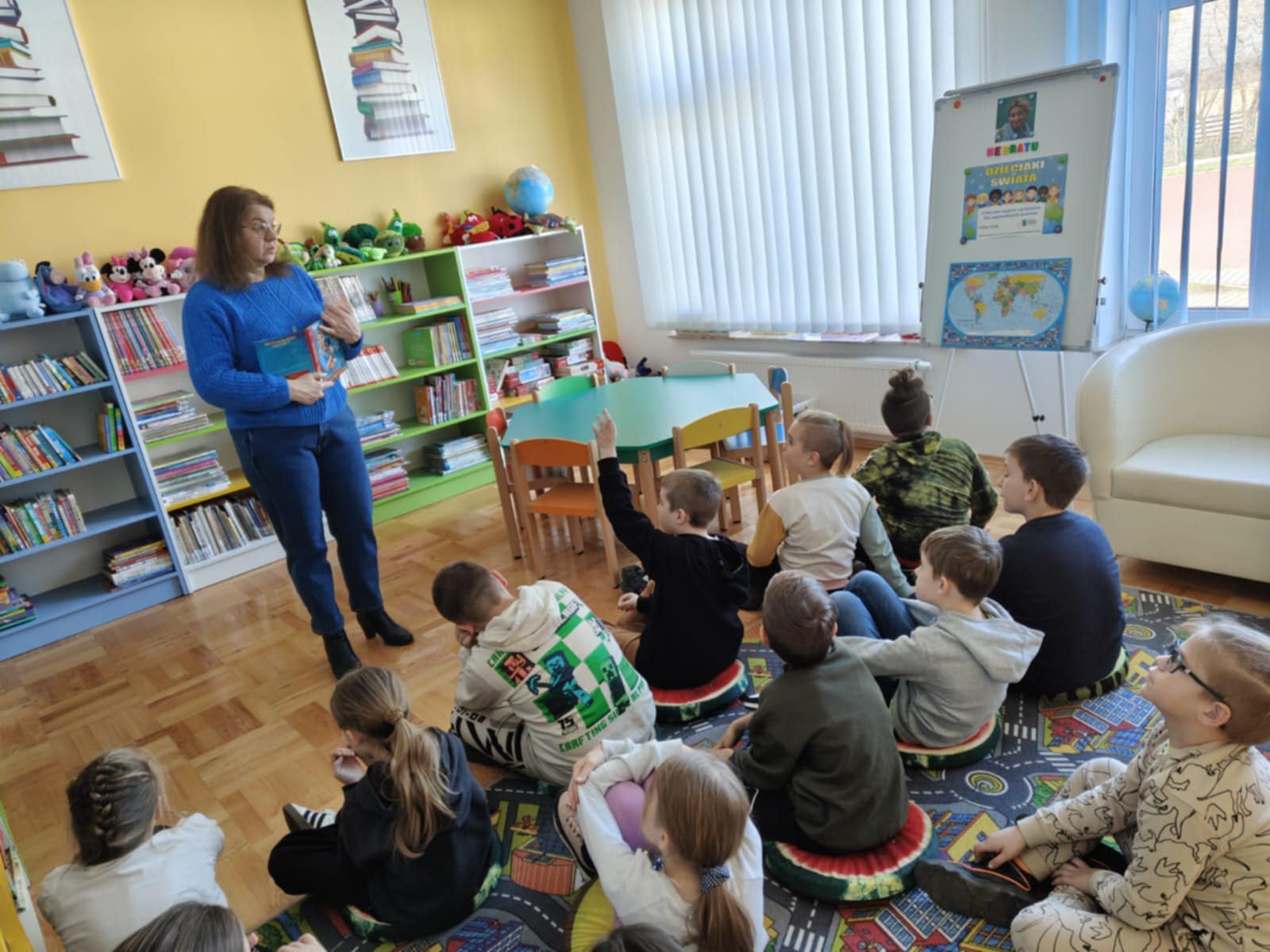 Zajęcia czytelnicze 26 marca w Gminna Biblioteka Publiczna w Zarszynie z cyklu „Dzieciaki Świata”. Uczniowie klas I-III i dzieci z zerówki poznały chłopca z Etiopii, wesołego pucybuta o imieniu Mebratu.