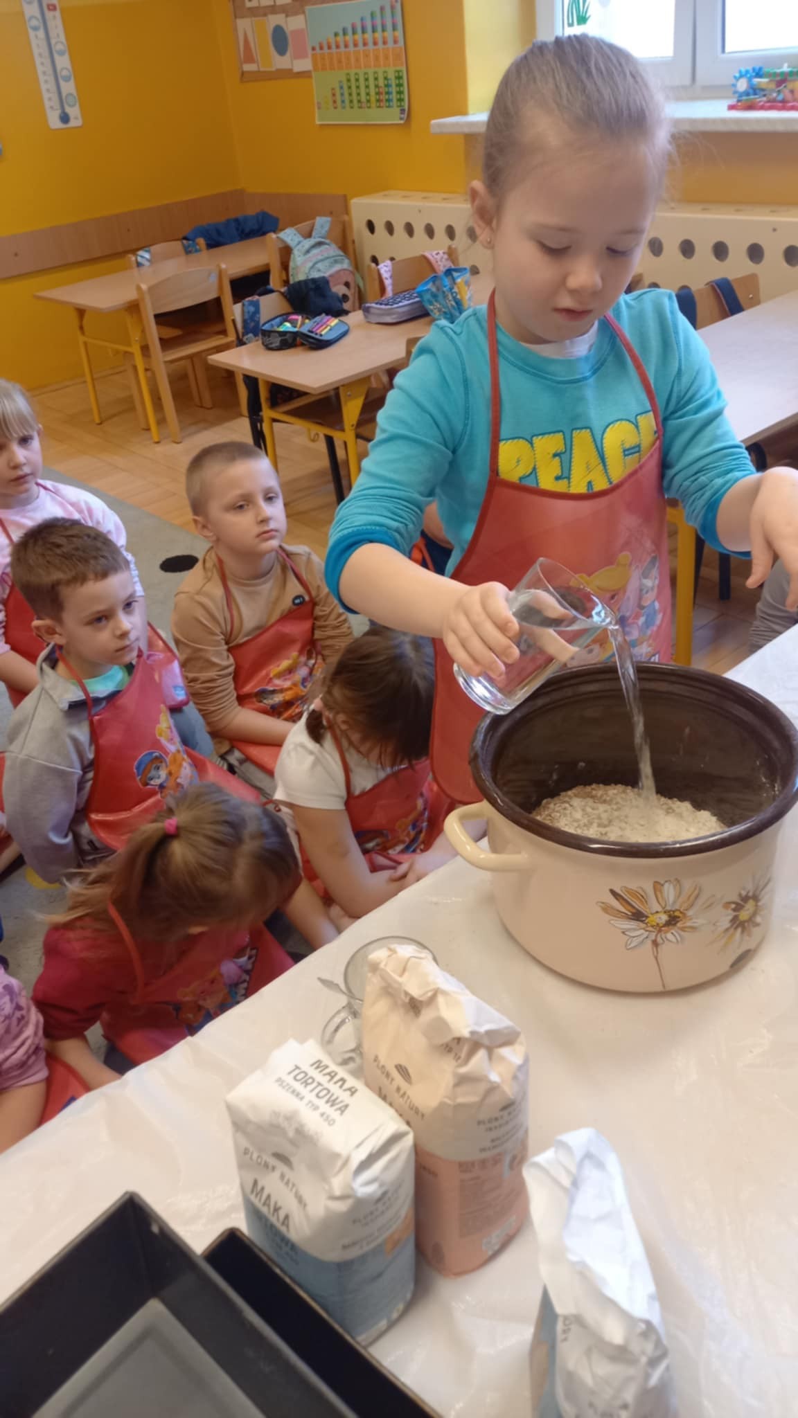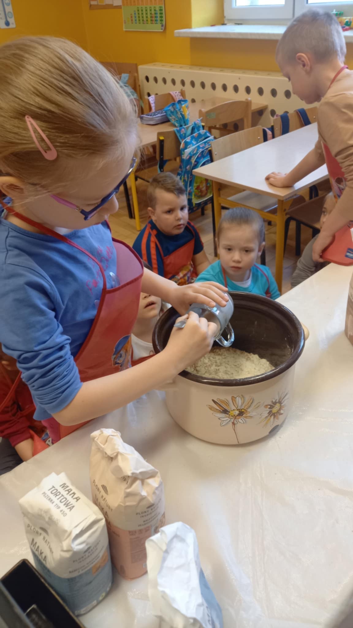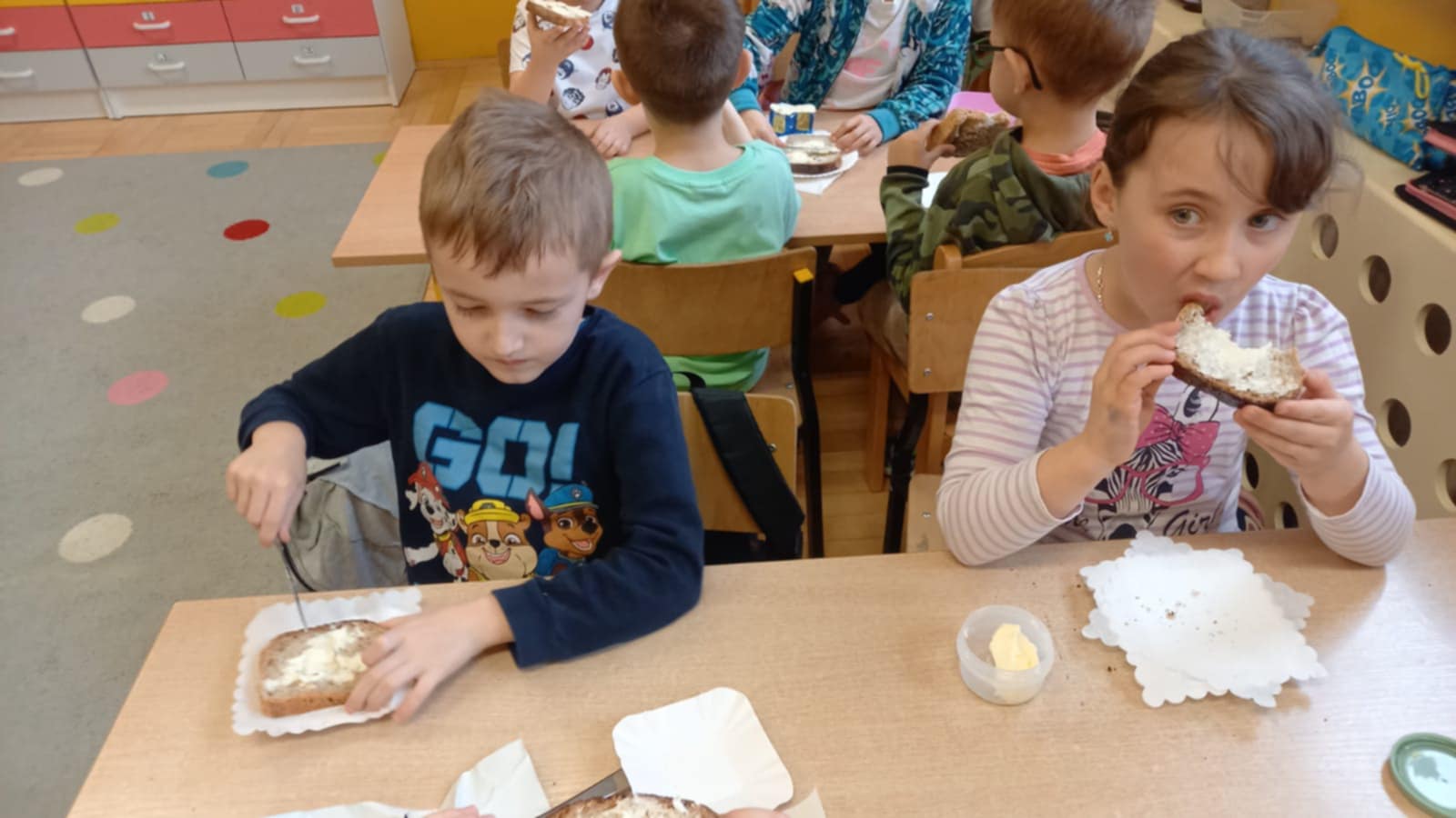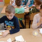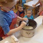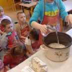 W środę 26 marca w ramach tematyki tygodniowej „Z czego to jest zrobione” klasa 0c przygotowała ciasto chlebowe oraz ser z mleka zsiadłego. Następnie odbyła się degustacja, pachnący, domowy chlebek i ser smakował wszystkim wyśmienicie. „Chleb pracą nabyty, bywa smaczny i syty”.