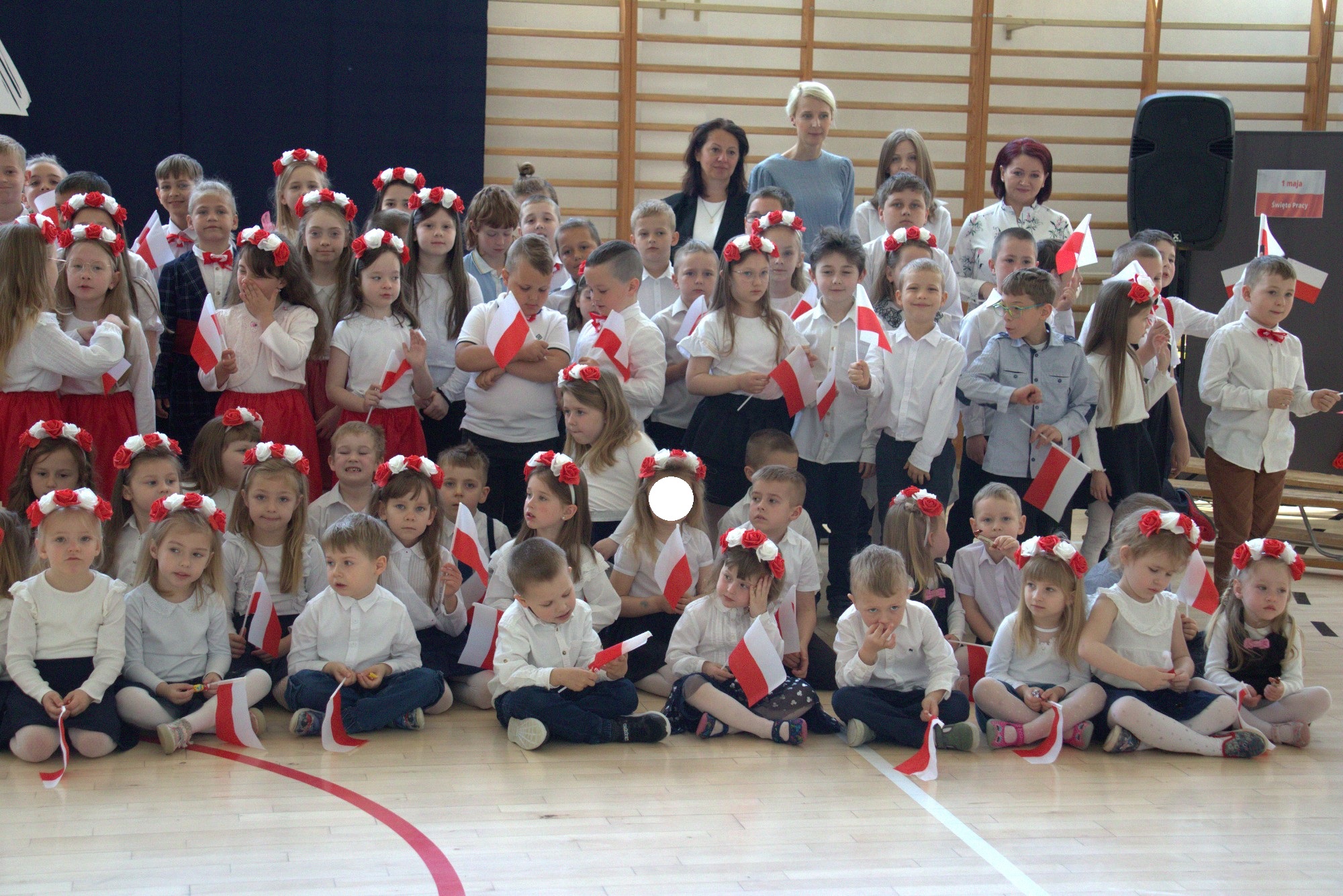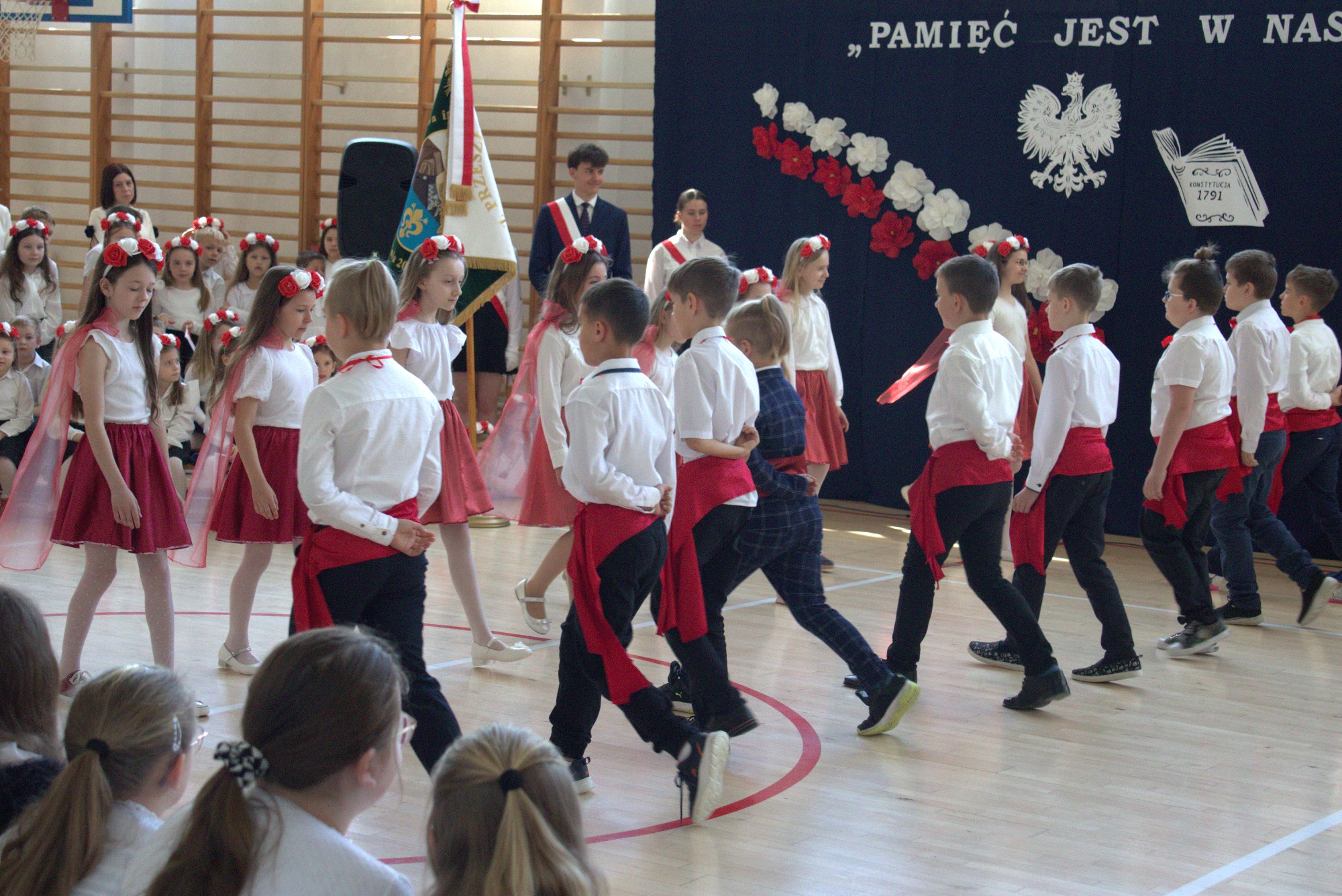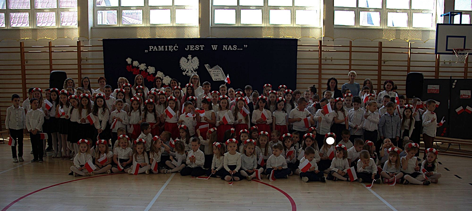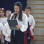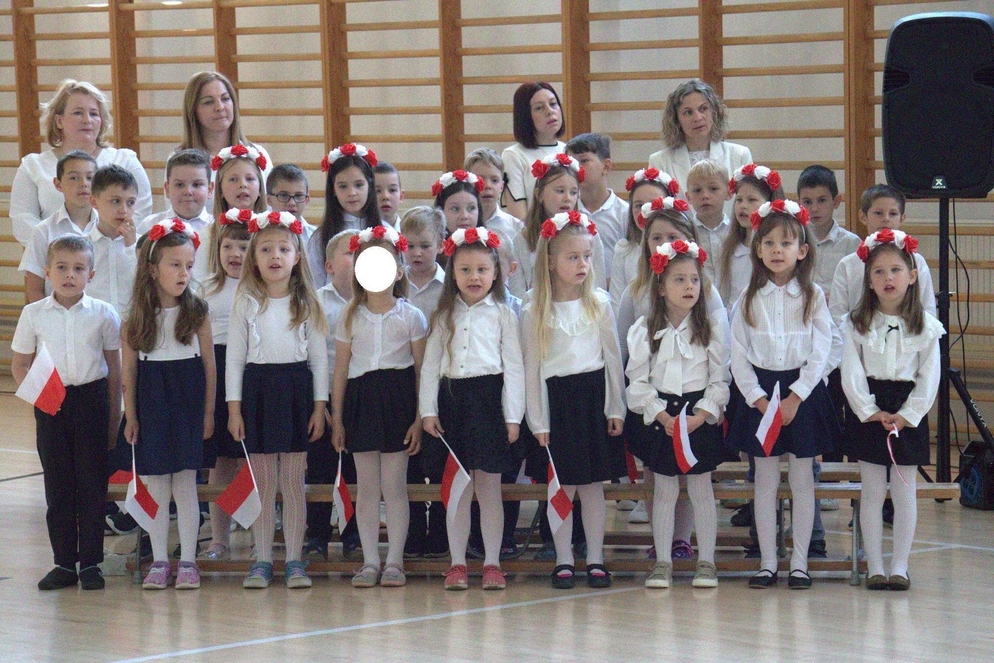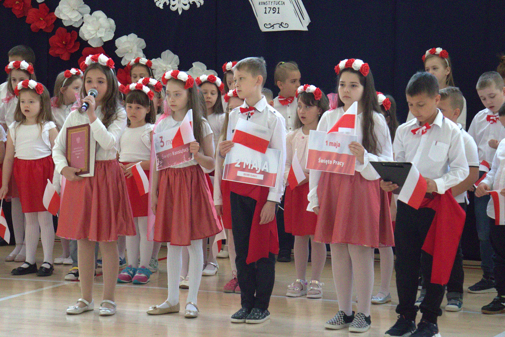 Uczniowie młodszych klas i dzieci z oddziałów przedszkolnych w pięknych strojach z biało – czerwonymi chorągiewkami w ręku demonstrowali swój patriotyzm. Młodzi artyści zaprezentowali wzruszający program artystyczny, w trakcie którego nie zabrakło tematycznych wierszy, wymownych piosenek oraz wspaniale odtańczonego poloneza. Była to niezwykła lekcja historii oraz świadectwo świadomości patriotycznej młodego pokolenia.