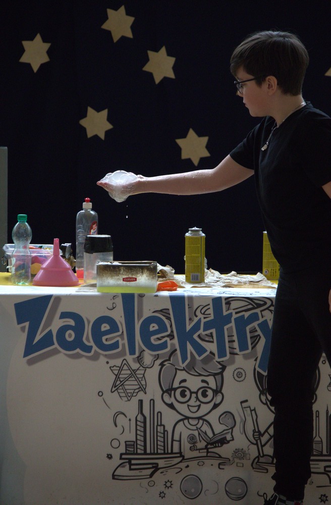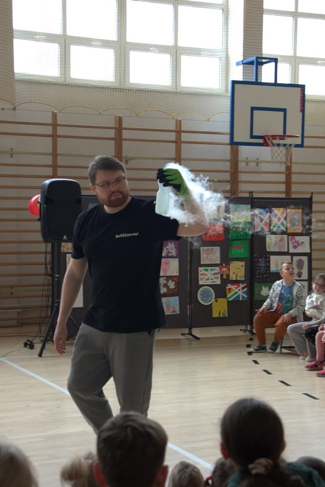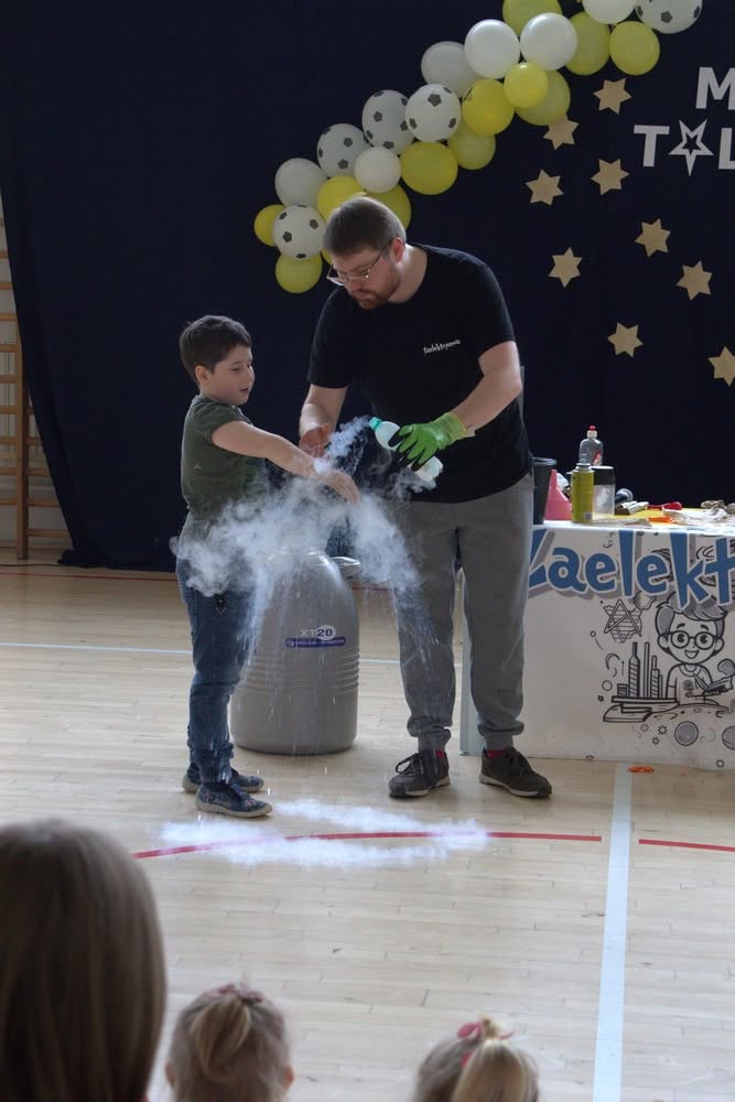 W dniu 28 marca Samorząd Uczniowski wraz z opiekunkami zorganizował wiosenny pokaz talentów. Zaprezentowało się wielu uczniów, pokazano talenty taneczne, muzyczne, sportowe oraz artystyczne, wszystkie występy oraz prace bardzo się podobały, o czym świadczyły ogromne brawa. Uczestnicy otrzymali dyplomy i słodki upominek. Następnie chętni uczestniczyli w pokazie eksperymentów grupy „Zelektryzowani” z Lublina, które przybliżyły najmłodszym dzieciom wiedzę z zakresu chemii i fizyki, a dla starszych były wartościową powtórką ważnych zagadnień naukowych. Prezentujący zaprosił do wspólnych doświadczeń chętnych uczniów. Było przy tym niemało zabawy. Uczniowie w ciekawej i przystępnej formie poszerzyli wiedzę o właściwościach powietrza, wodoru i helu oraz mogli zobaczyć efektowne pokazy z ciekłym azotem w roli głównej. Po raz kolejny okazało się, że nauka nie musi być nudna, a do przeprowadzenia wielu doświadczeń niepotrzebne są wcale specjalistyczne laboratoria. Wystarczy trochę chęci, szczypta wyobraźni i … odrobina wiedzy. Prowadzący pokaz podkreślił, jak ważne jest zachowanie bezpieczeństwa podczas doświadczeń.