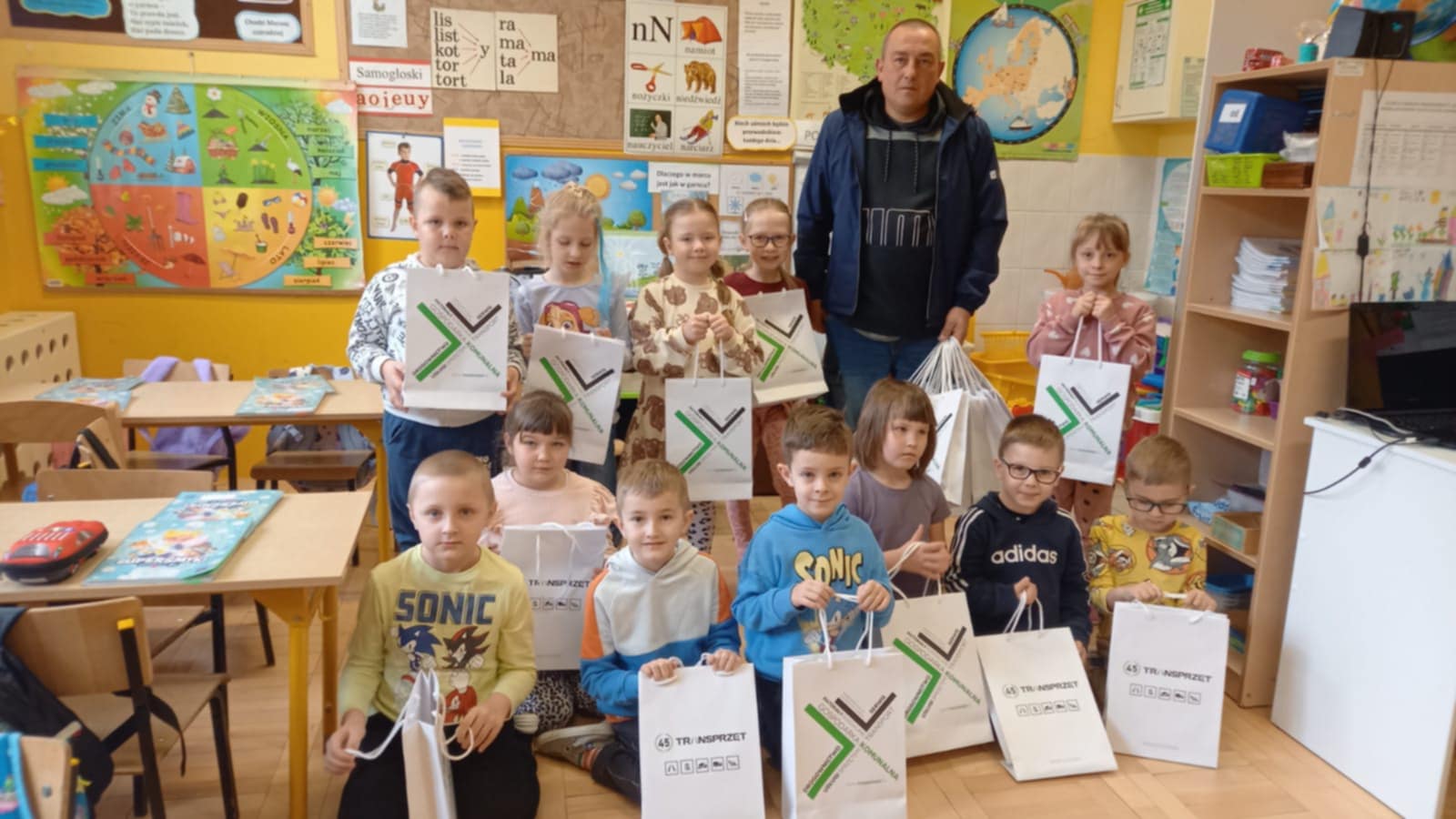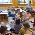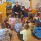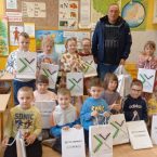 W dniu 14 marca zaś odbyło się spotkanie z panem Krzysztofem Tywoniuk pracownikiem firmy TRANSPRZĘT z zakresu preorientacji zawodowej. Dzieci miały okazję poznać zawód – operator ładowarki. Z zaciekawieniem wszyscy zerówkowicze wysłuchali pogadanki oraz obejrzeli krótkie filmiki przedstawiające obsługę sprzętu na którym pracuje pan Krzysztof. Serdeczne podziękowania kierujemy do Firmy TRANSPRZĘT za podarowane upominki oraz do pana Krzysztofa za poświęcony czas.