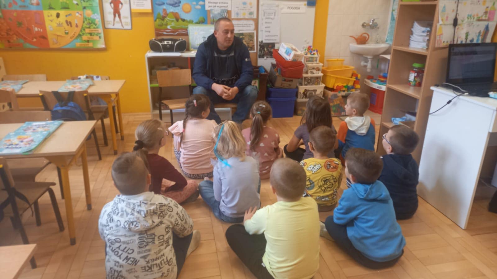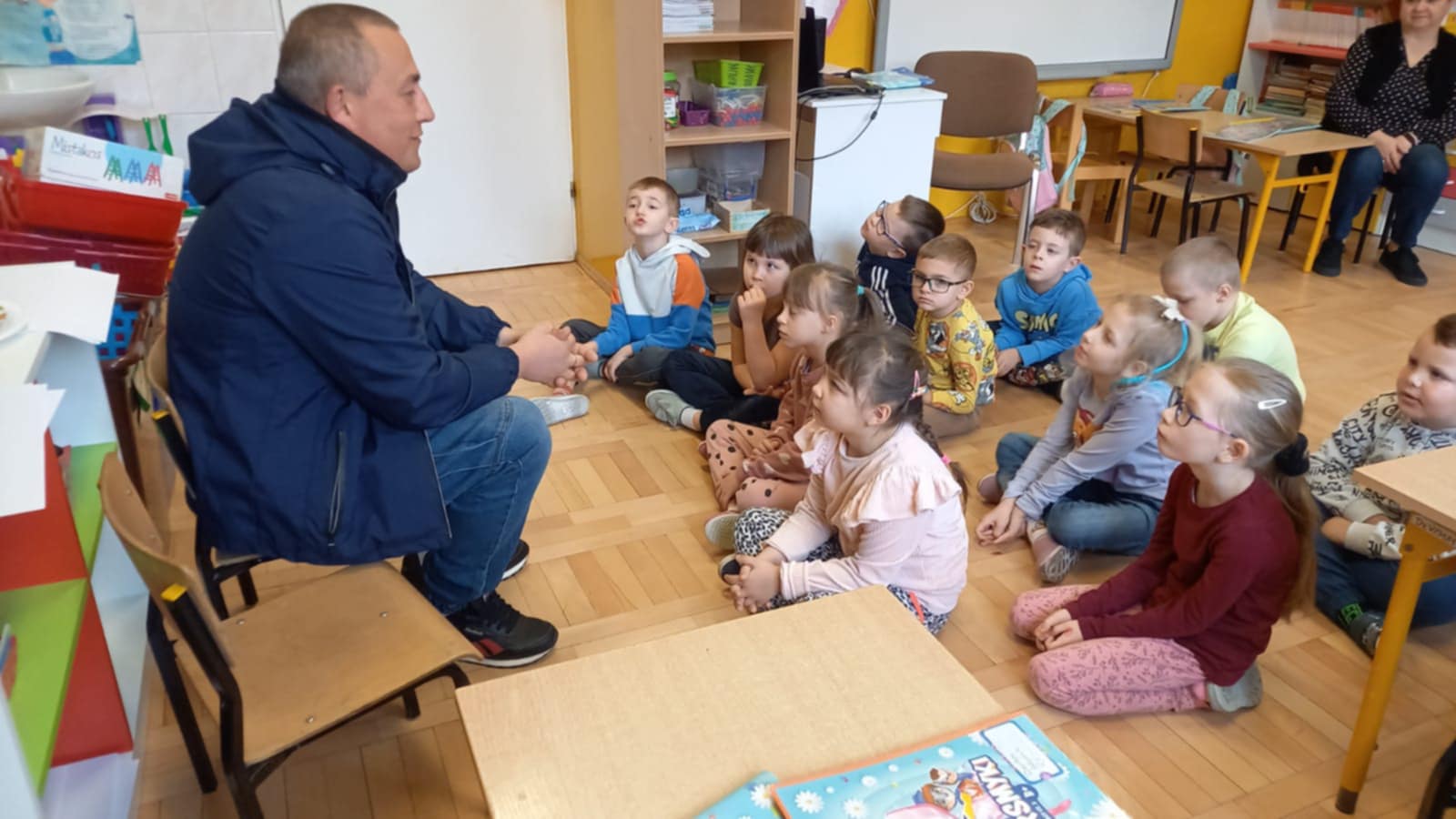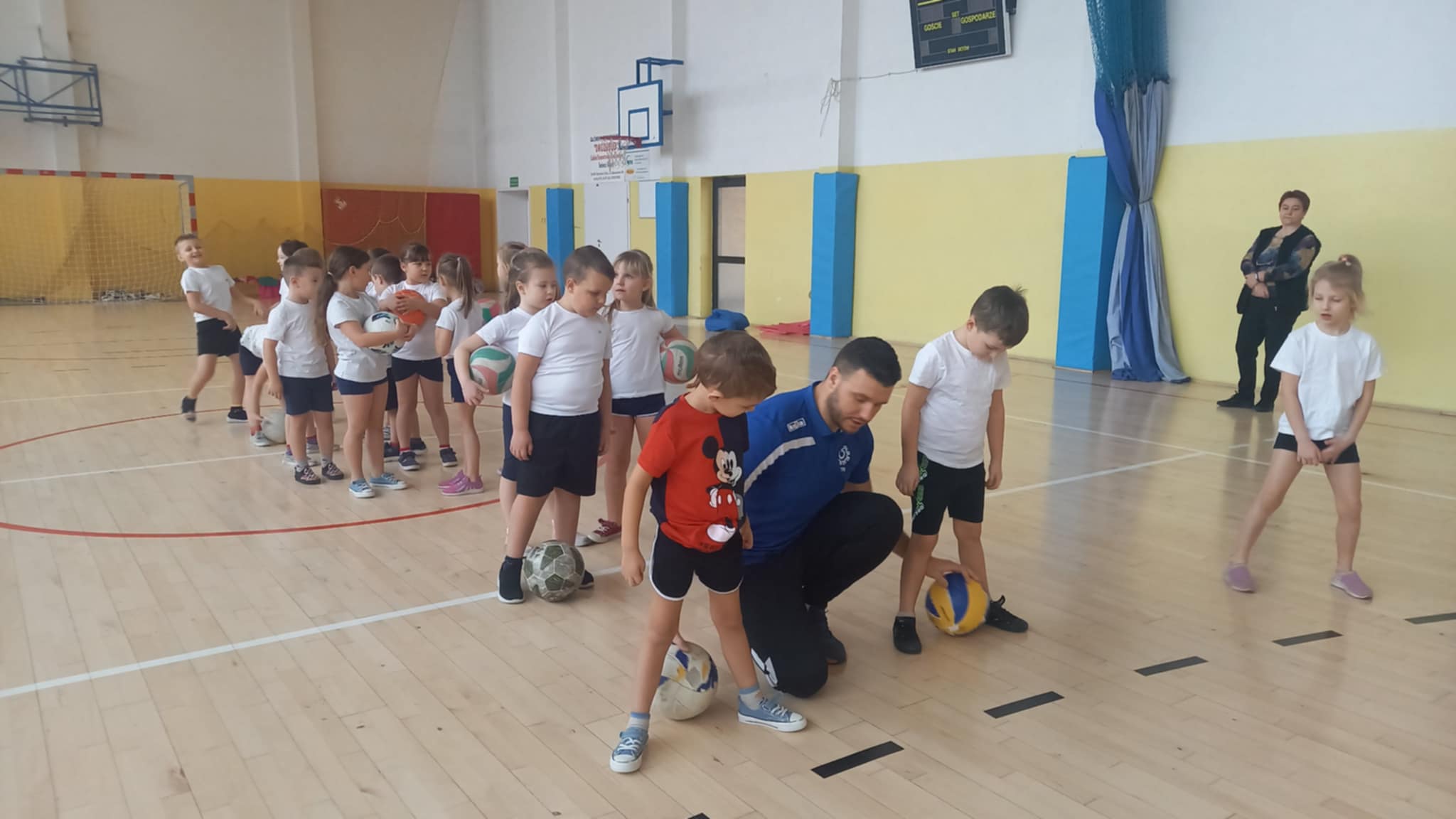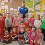 14 lutego dzieci z zerówki odwiedził pan Michał Śmietana. W sposób profesjonalny przedstawił swoje ulubione hobby jakim jest piłka nożna. Pan Michał przeprowadził z dziećmi rozgrzewkę sportową i mini trening piłkarski. Opowiedział również o znaczeniu sportu dla zdrowia oraz zaprezentował zdobyte medale. Nie zabrakło też słodkiego, ale zdrowego poczęstunku. Dziękujemy za super spotkanie, które wzbogaciło i uatrakcyjniło proces poznawczy dzieci.