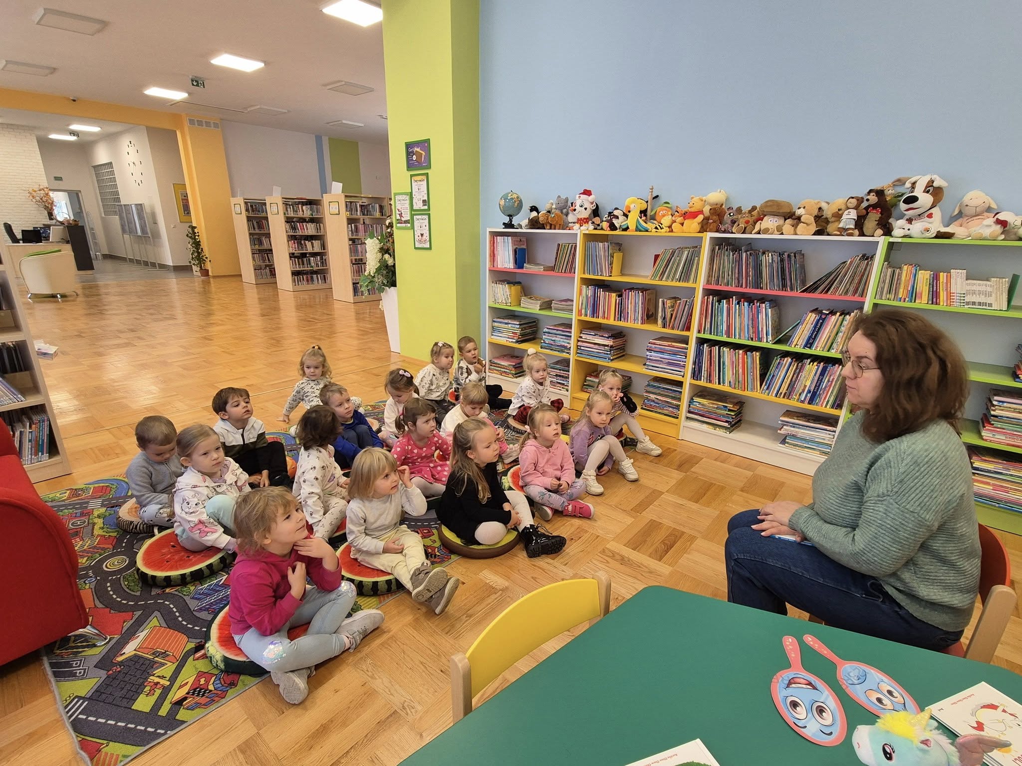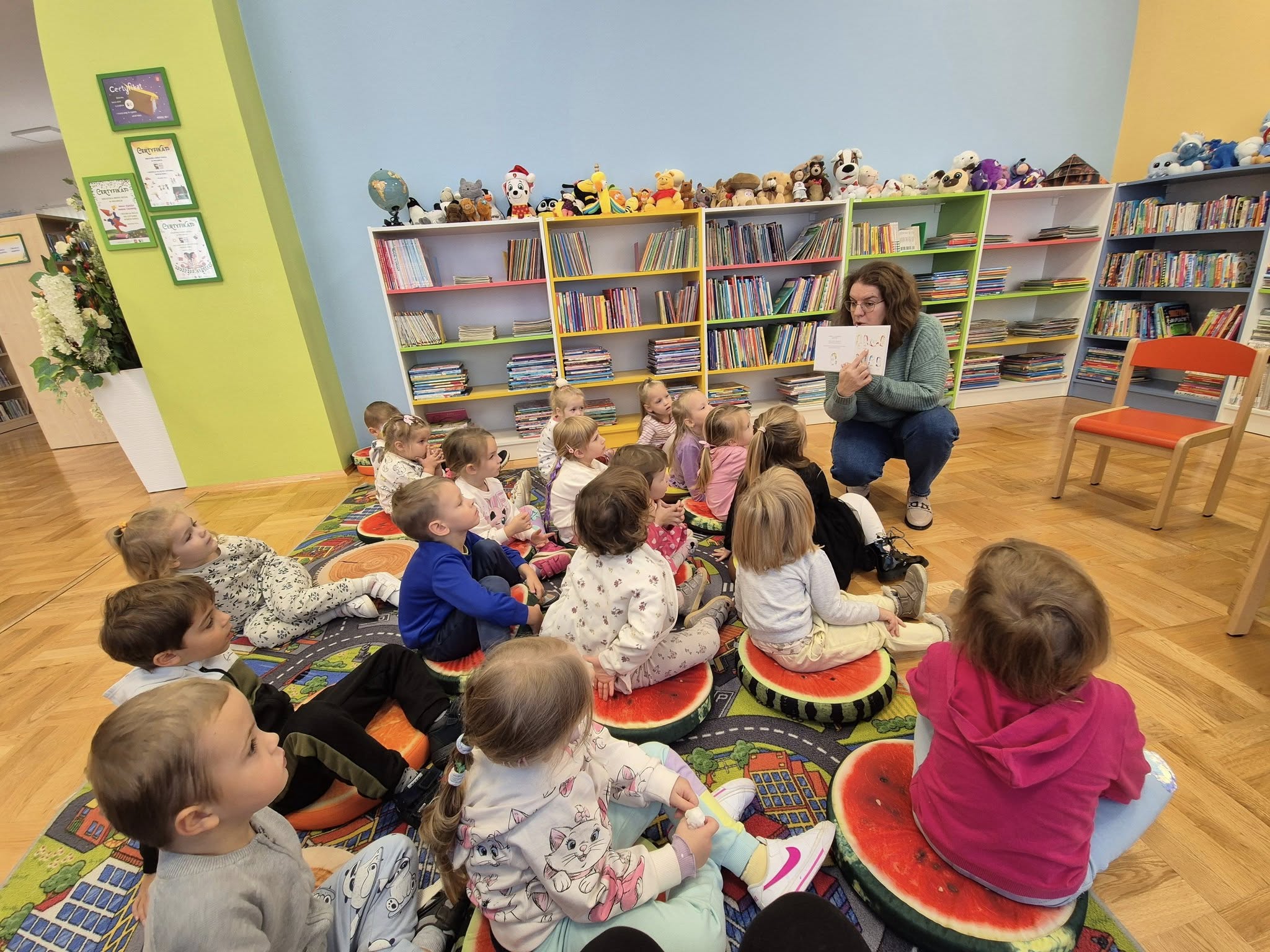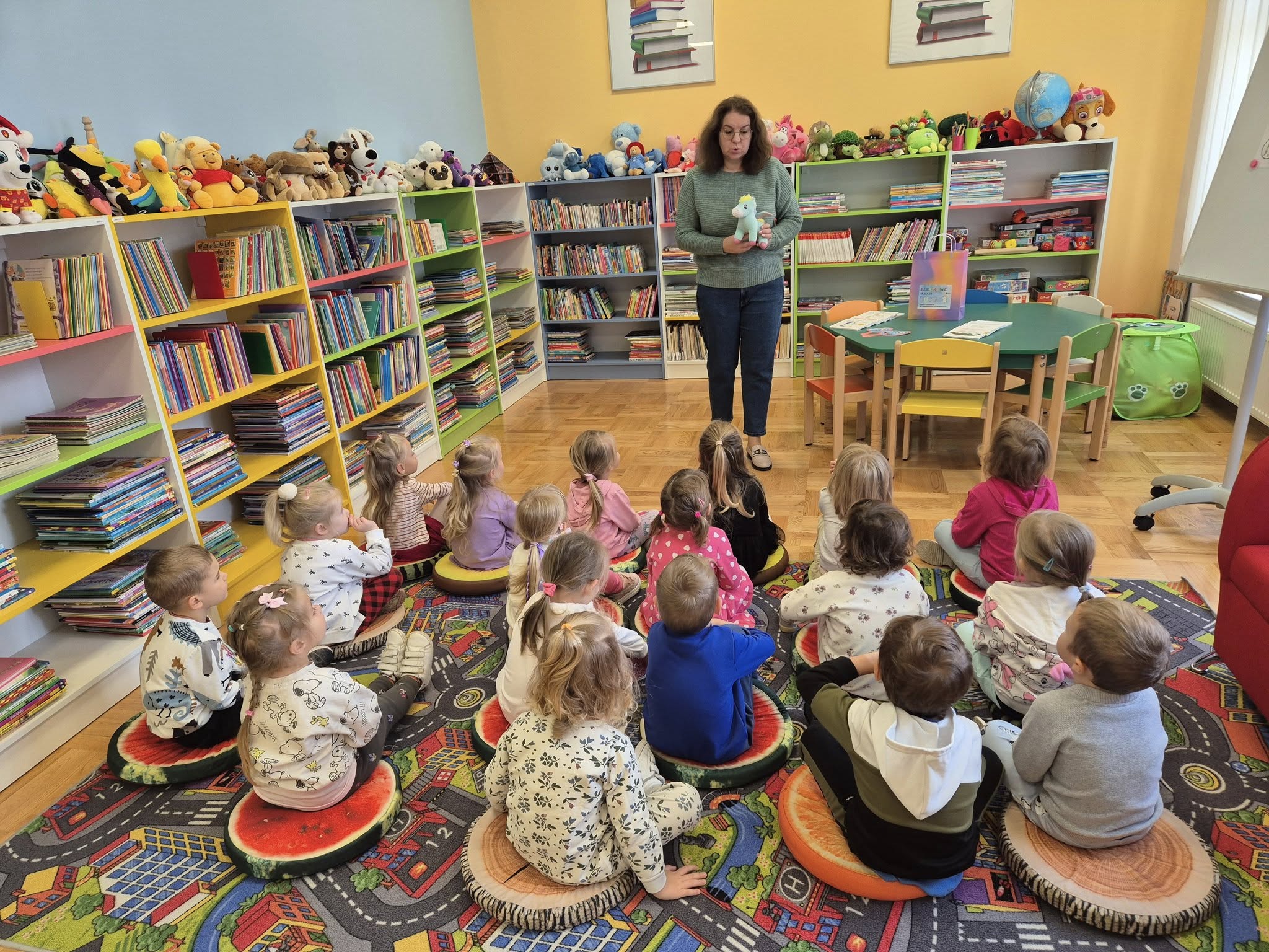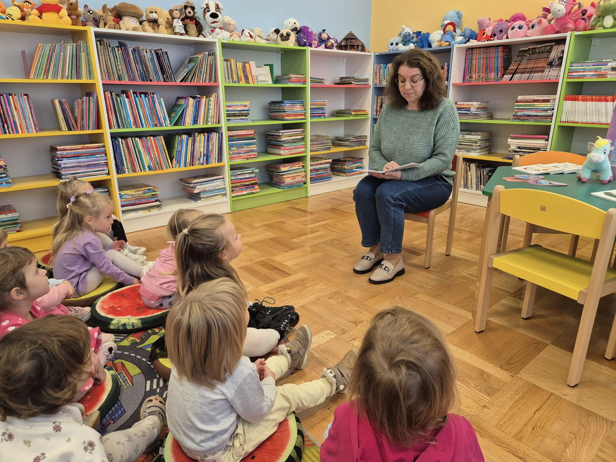 W ramach  NARODOWEGO PROGRAMU ROZWOJU CZYTELNICTWA  zerówka uczestniczyła w  spotkaniu z cyklu „Bajkowe Podróże” z Panią A. Bieleń z Gminnej Biblioteki Publicznej w Zarszynie na temat Włoch. Dzieci poznały ciekawostki o tym kraju oraz jego słynne miejsca – Wenecję, Rzym i krzywą wieżę w Pizie. Następnie przedszkolaki wysłuchały bajki „Pinokio”, napisanej przez Carla Collodiego, znanego włoskiego pisarza. Dzieci z zainteresowaniem śledziły przygody drewnianego chłopca i chętnie uczestniczyły w rozmowie na temat wysłuchanego utworu. Spotkanie przebiegło w miłej atmosferze i wzbogaciło wiedzę dzieci o kulturze włoskiej.  Dzieci z oddziału przedszkolnego 0a wybrały się również do Gminnej Biblioteki Publicznej w Zarszynie na spotkanie z Panią A. Bieleń w ramach zajęć czytelniczych „Kolorowe uczucia Gucia”. Bohaterem krótkich opowiadań, który uczy rozpoznawania emocji i rozwiązywania trudnych sytuacji jest Gucio. Tym razem dzieci wysłuchały bajkę pt. „Gucio się smuci”. Przedszkolaki poznały sposoby radzenia sobie ze smutkiem, wykonały ćwiczenia oddechowe które przeganiają ciemne chmury a następnie zaprosiły do siebie słoneczko. To były ciekawe i interesujące zajęcia a także ćwiczenia, które pomogą naszym najmłodszym przedszkolakom wyciszyć się i zapanować nad emocjami. Dzieci z oddziału przedszkolnego 0a uczestniczyły także w  spotkaniu czytelniczym pt. „Poznajemy zawody” w bibliotece szkolnej. Pani Agata Żuchowska tym razem przeczytała dzieciom bajeczkę pt. „Weterynarz – Pogotowie weterynaryjne”. Samochodzik Franek i jego przygody z różnymi pacjentami świetnie ukazała pracę weterynarza. Dzieci dowiedziały się również jak należy dbać o swoje zwierzątka domowe. Po tym ciekawym spotkaniu nasze najmłodsze przedszkolaki już wiedzą, na czym polega praca weterynarza. Dzieci z grupy przedszkolnej 0b i 0c wybrały się do Sanoka do Miejskiej Biblioteki Publicznej im.Grzegorza z Sanoka na warsztaty czytelnicze poświęcone tematyce jesiennej. Spotkanie odbyło się w ramach Narodowego Programu Rozwoju Czytelnictwa. Podczas zajęć dzieci wysłuchały książki K.Baniewicz – Kowalczyk pt. „Wszyscy jesteśmy wyjątkowi”, która stała się punktem wyjścia do rozmowy o tym, co oznacza być wyjątkowym. Przedszkolaki chętnie dzieliły się swoimi przemyśleniami, opowiadały o swoich talentach, zainteresowaniach i tym, co sprawia, że każdy człowiek jest inny, a zarazem ważny. Poprzez tę wycieczkę dzieci rozwijały swoje zainteresowania czytelnicze, zapoznawały się z zasadami korzystania z biblioteki i rolą, jaką pełni w życiu człowieka, a także wyrabiały szacunek do książki i nawyk kulturalnego zachowania w miejscu publicznym. Przedszkolaki miały również okazję poznać zawód bibliotekarza oraz dowiedzieć się, na czym polega jego praca. Spotkanie przebiegło w miłej i twórczej atmosferze. Dzieci aktywnie uczestniczyły w zajęciach, z zainteresowaniem słuchały i brały udział w rozmowach. Wyjście do biblioteki pozwoliło nie tylko rozwinąć zainteresowania czytelnicze, ale również kształtowało postawę akceptacji i szacunku wobec innych.
