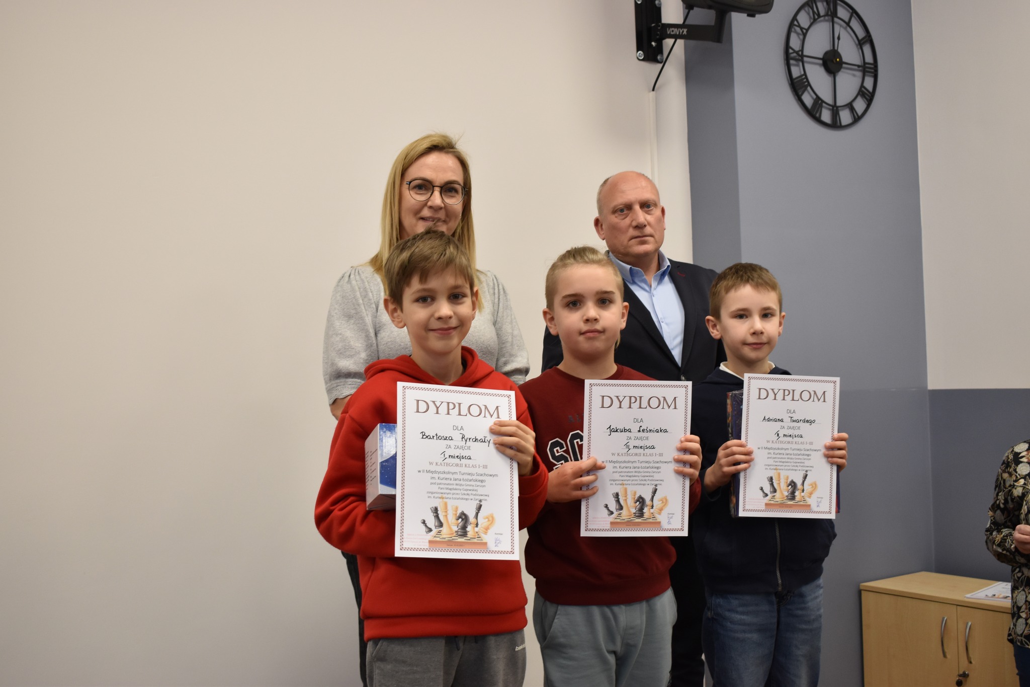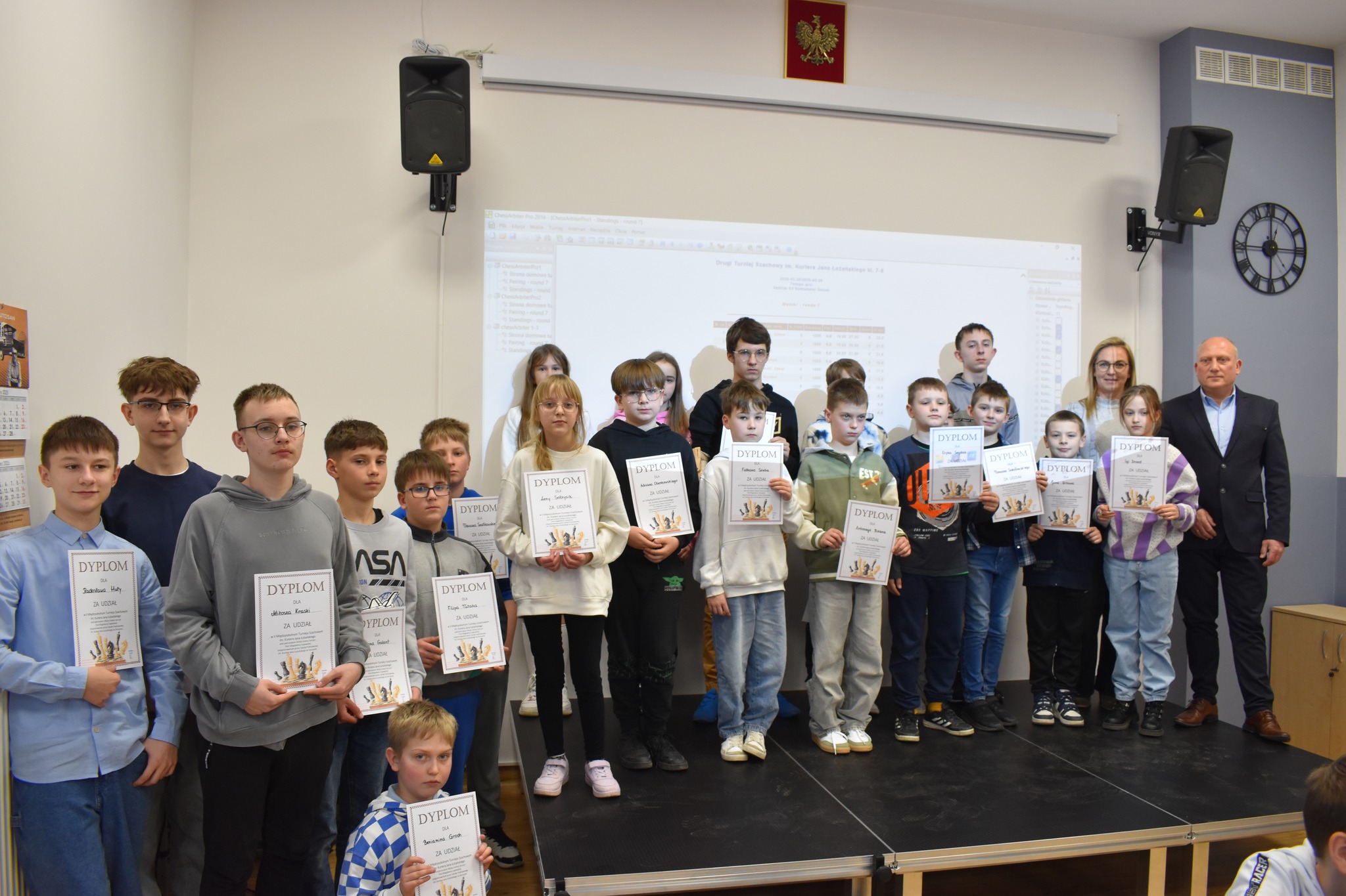 W dniu 25.03.2025 r. odbył się Drugi Międzyszkolny Turniej Szachowy im. Kuriera Jana Łożańskiego zorganizowany Szkołę Podstawową w Zarszynie. W zmaganiach wzięło udział 31 zawodników z sześciu szkół naszej gminy. SP w Bażanówce reprezentowali: Hubert Bury, Kamil Kata, Wiktor Kowalewicz. SP w Długiem reprezentowali: Adrian Twardy, Filip Tutak, Fabian Szuba, Stanisław Twardy, Szymon Galant, Szymon Szajna. SP w Odrzechowej reprezentowali: Jan Urban, Beniamin Groch, Antoni Brzana, Radosław Huta, Miłosz Kraska, Oskar Nowakowski. SP w Nowosielcach reprezentowali: Iga Drozd, Lena Sołtysik, Wiktor Drozd, Adrian Osenkowski. SP w Pielni reprezentowali Tomasz Sokołowski, Eryk Sajdak, Jakub Galant, Julia Słysz, Bartosz Wijas, Tobiasz Szatkowski. Z ramienia gospodarzy udział w turnieju wzięli: Aleksandra Kostur, Yehor Polianskyi, Adam Pyrchała, Bartosz Pyrchała i Jakub Leśniak. Rozgrywki przeprowadzono w trzech kategoriach wiekowych, oto zwycięzcy: