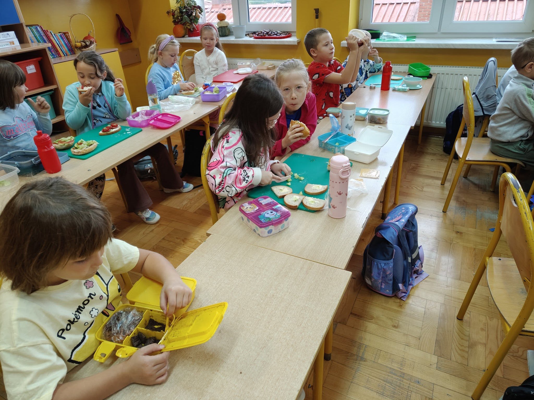 Z okazji Tygodnia Dobrych Relacji, dzieci z oddziałów przedszkolnych 0a i 0b odwiedziła Pani Pedagog S. Bańczak. Dzieci uczestniczyły w zajęciach, które miały na celu rozwijanie empatii, umiejętności rozwiązywania konfliktów i budowania przyjaźni u dzieci. W zerówce odbyło się spotkanie z Panią psycholog D.Tomczewską, która przeczytała dzieciom bajkę z książki pt.: „Mądre bajki o przyjaźni.” Opowieść zachęciła dzieci do rozmów o życzliwości, współpracy i wzajemnym szacunku. Spotkanie z bohaterami bajki było dla dzieci wartościowym doświadczeniem i dostarczyło wielu pozytywnych emocji. Dzieci dowiedziały się bardzo dużo o empatii, życzliwości i wzajemnym porozumiewaniu się, co pomogło im lepiej zrozumieć, jak budować dobre relacje z innymi. Uczniowie klas I-III mieli okazję zjeść śniadanie wspólnie z wychowawcami, a następnie mogli „spalić” zgromadzone kalorie w trakcie tanecznej przerwy. Był to czas spędzony na miłych rozmowach i wesołej zabawie oraz okazja do integracji uczniów z kolegami, koleżankami i nauczycielami.