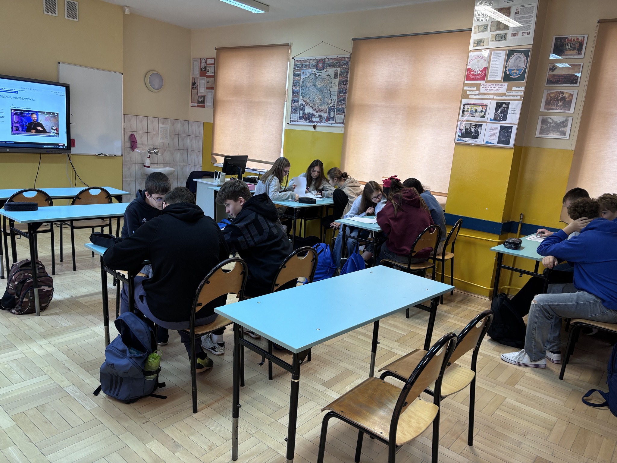 W dniu 27.11.2025 r. w klasie ósmej odbyły się ciekawe warsztaty historyczne dotyczące ogólnopolskiej akcji BohaterOn. Wzięli w nich udział uczniowie pod patronatem nauczycieli: pana Jacka Leszczyńskiego i pani Justyny Chrobak. W tym roku w ramach akcji królowały Kobiety Powstania!