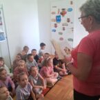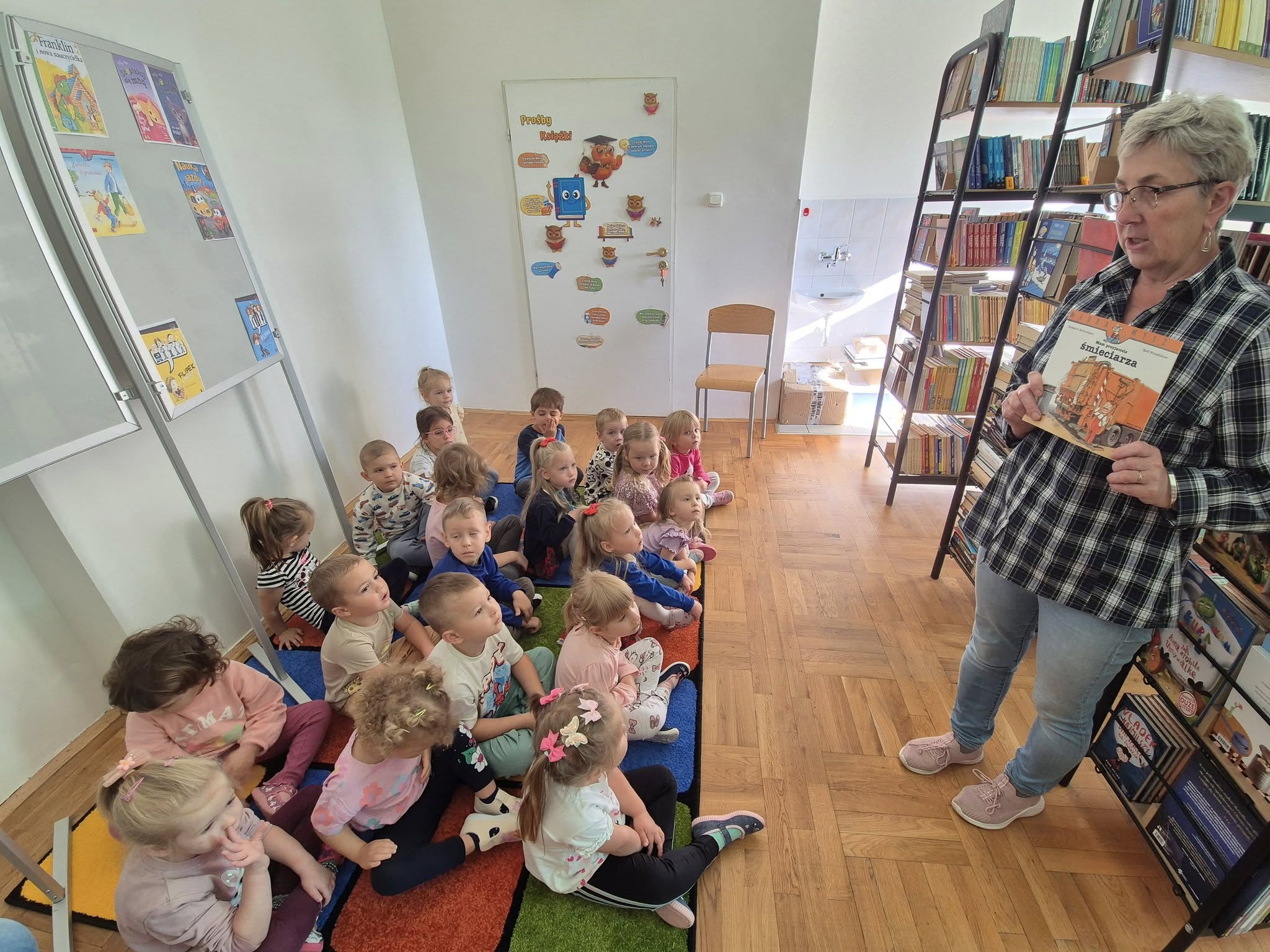 W dniu 18 września dzieci z oddziału przedszkolnego 0a uczestniczyły w pierwszym spotkaniu czytelniczym pt. „Poznajemy zawody”. Pani bibliotekarka przeczytała dzieciom bajeczkę pt. „Mam przyjaciela śmieciarza”. Przedszkolaki z uwagą wysłuchały wskazówek dotyczących segregowania śmieci. Pani zachęcała dzieci do dbania o najbliższą okolicę poprzez udział w „sprzątaniu świata” oraz wyrzucaniu śmieci do odpowiednich pojemników.