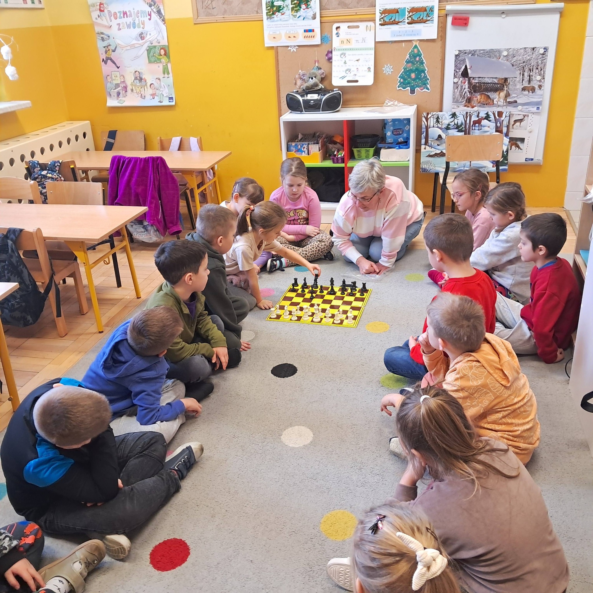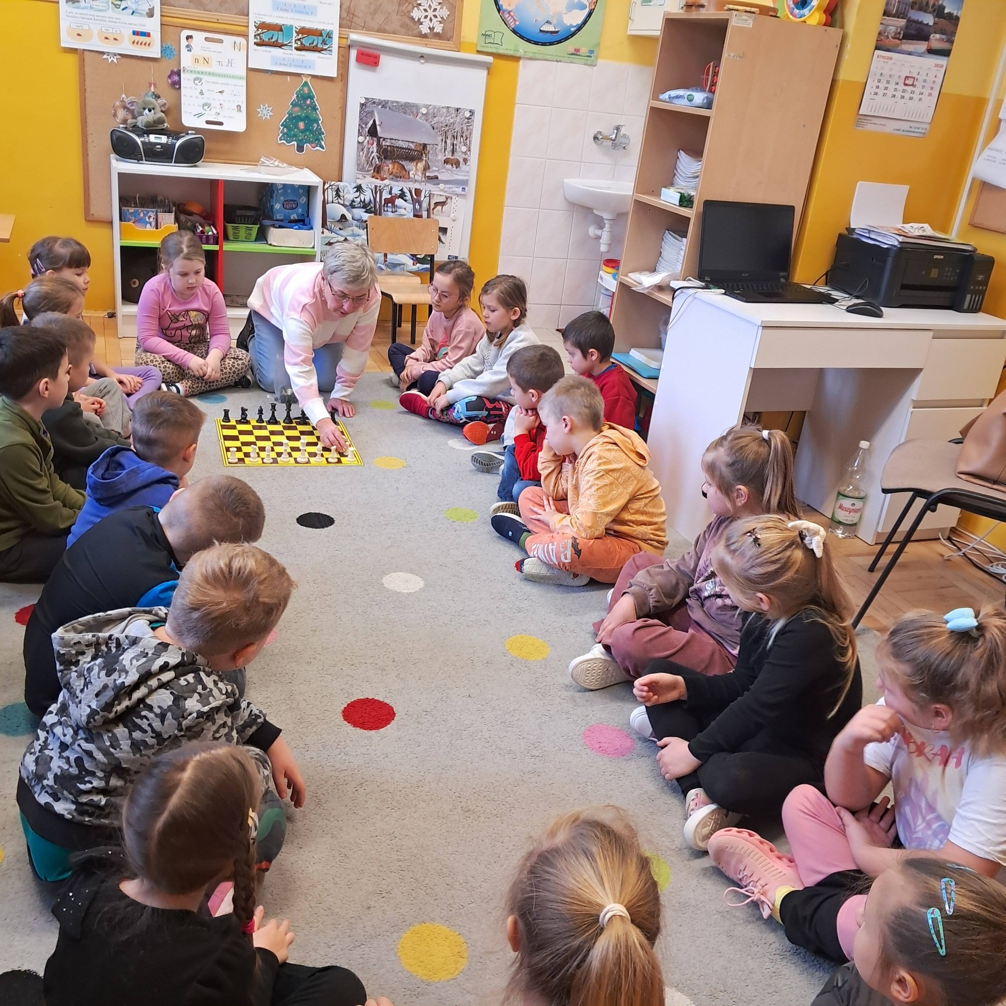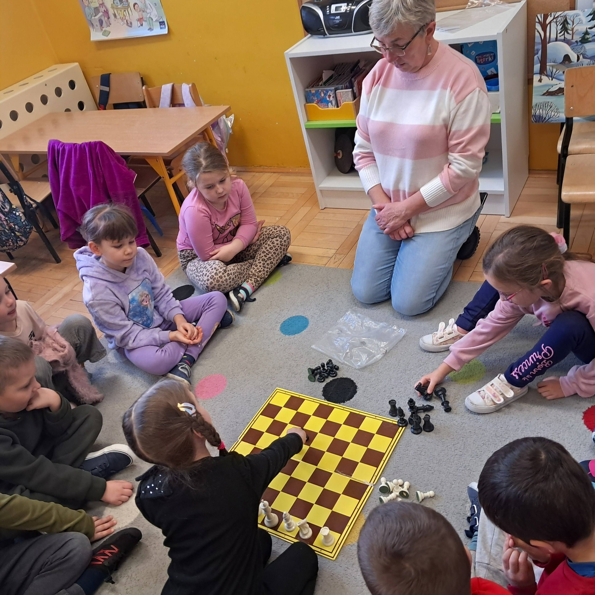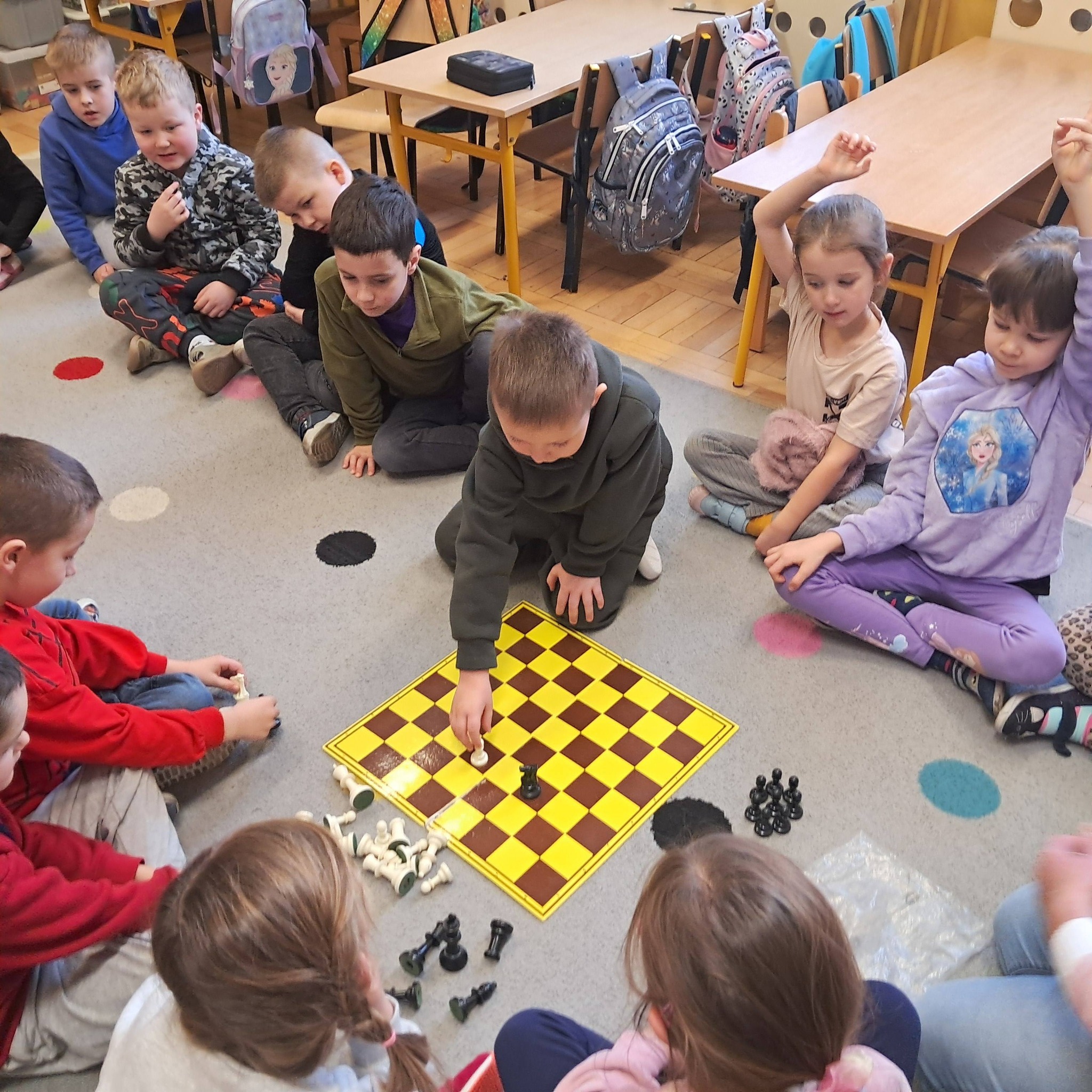 Odbyło się również kolejne spotkanie szachowe przeprowadzone przez Panią A.Żuchowską. Podczas spotkania szachowego dzieci poznały nazwy pozostałych pionków i bierek szachowych oraz zapoznały się z zasadami ich poruszania. Uczestnicy dowiedzieli się, jakie są specjalne reguły dotyczące ruchów poszczególnych bierek oraz czym charakteryzuje się sposób ich poruszania po szachownicy. Spotkanie miało na celu rozwijanie logicznego myślenia, koncentracji uwagi oraz zainteresowania grą w szachy. Dziękujemy serdecznie Pani A. Żuchowskiej za przeprowadzone zajęcia.