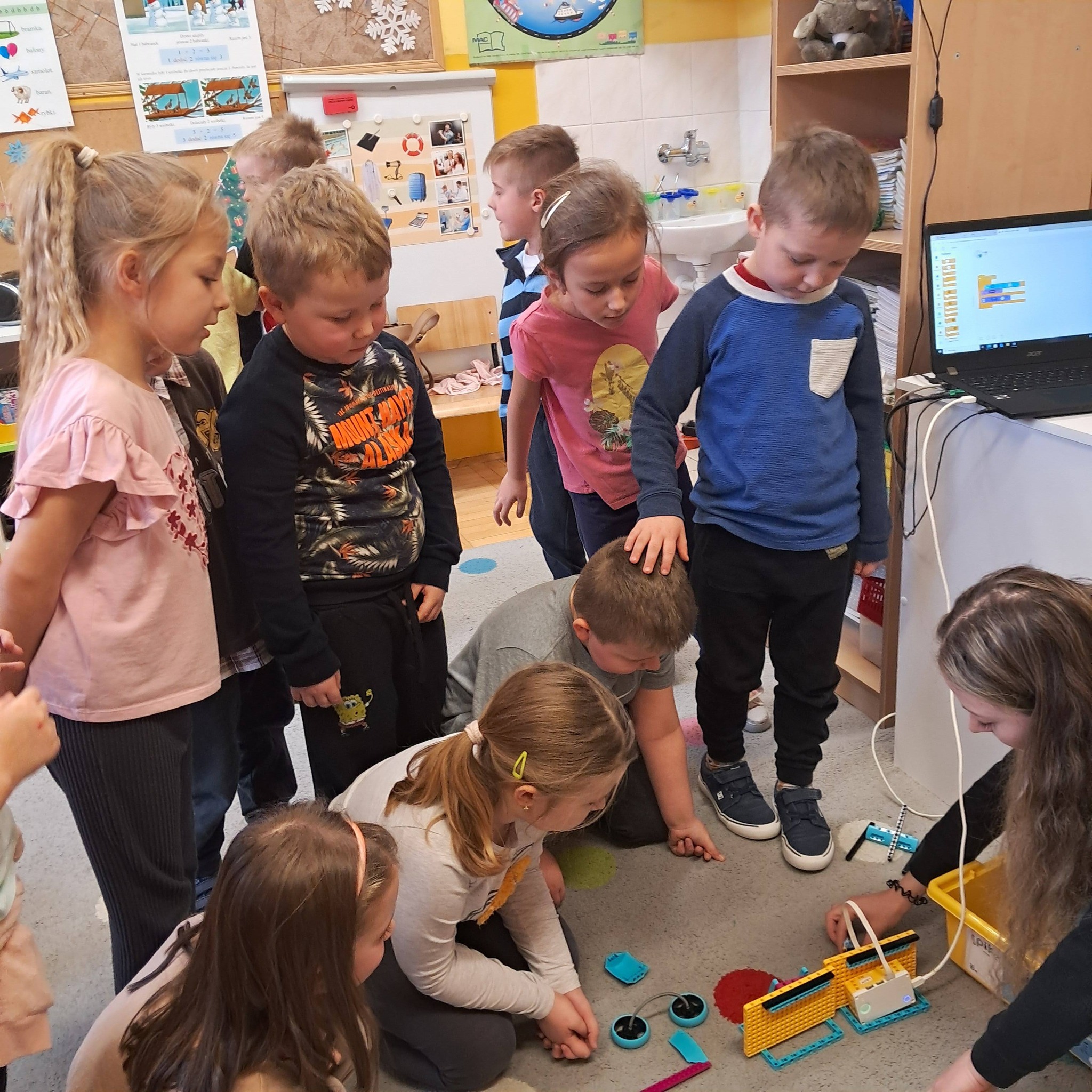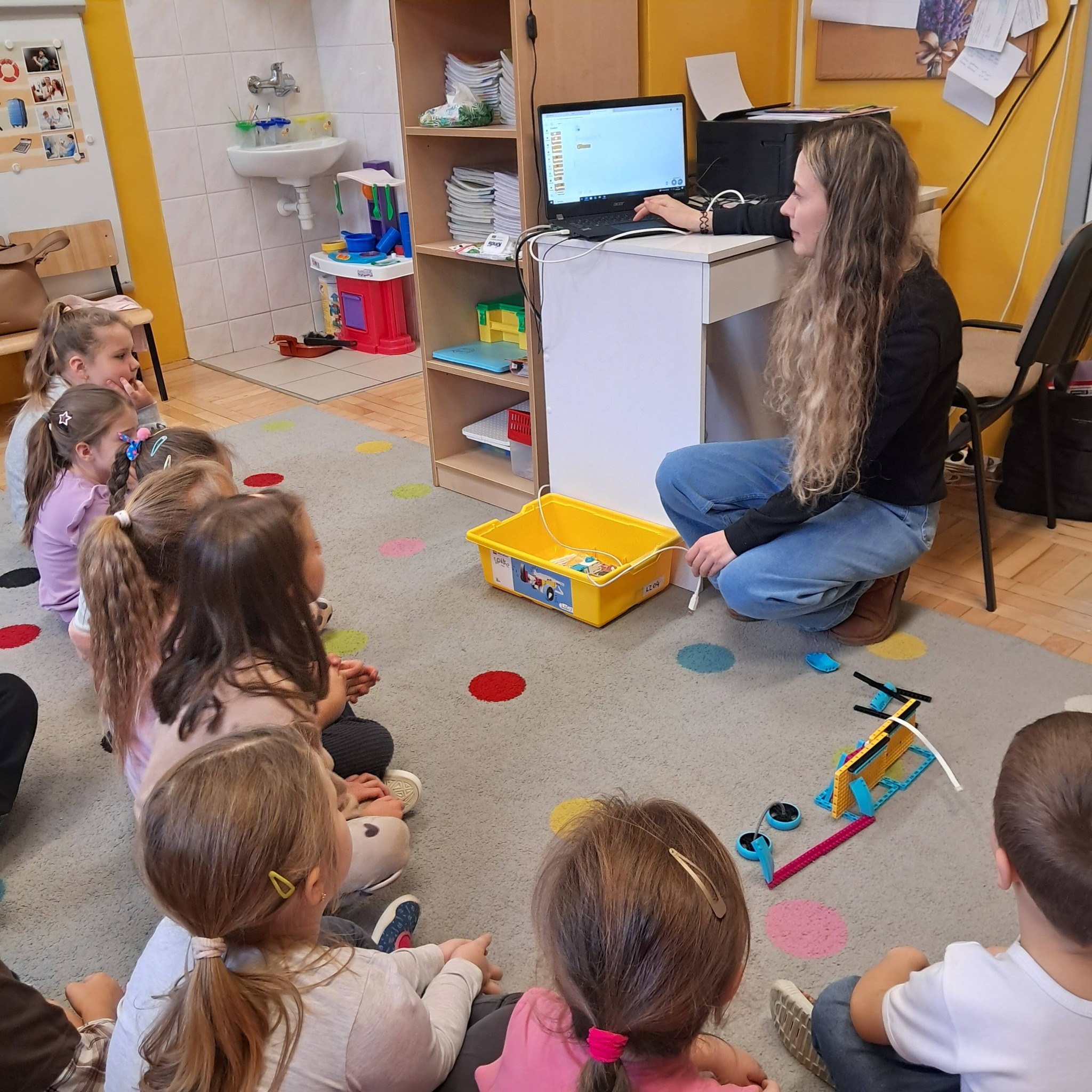 Odbyło się również kolejne spotkanie z panią I. Kropyvnytską poświęcone zagadnieniom kodowania i robotyki. Tematem zajęć było zbudowanie prostego systemu ostrzegawczego. Podczas spotkania dzieci w przystępny i angażujący sposób zapoznały się z podstawowymi pojęciami związanymi z kodowaniem oraz działaniem systemów ostrzegawczych. Uczestnicy aktywnie brali udział w zajęciach, rozwijając kreatywność oraz umiejętność współpracy. Dziękujemy Pani Irynie za ciekawe zajęcia.