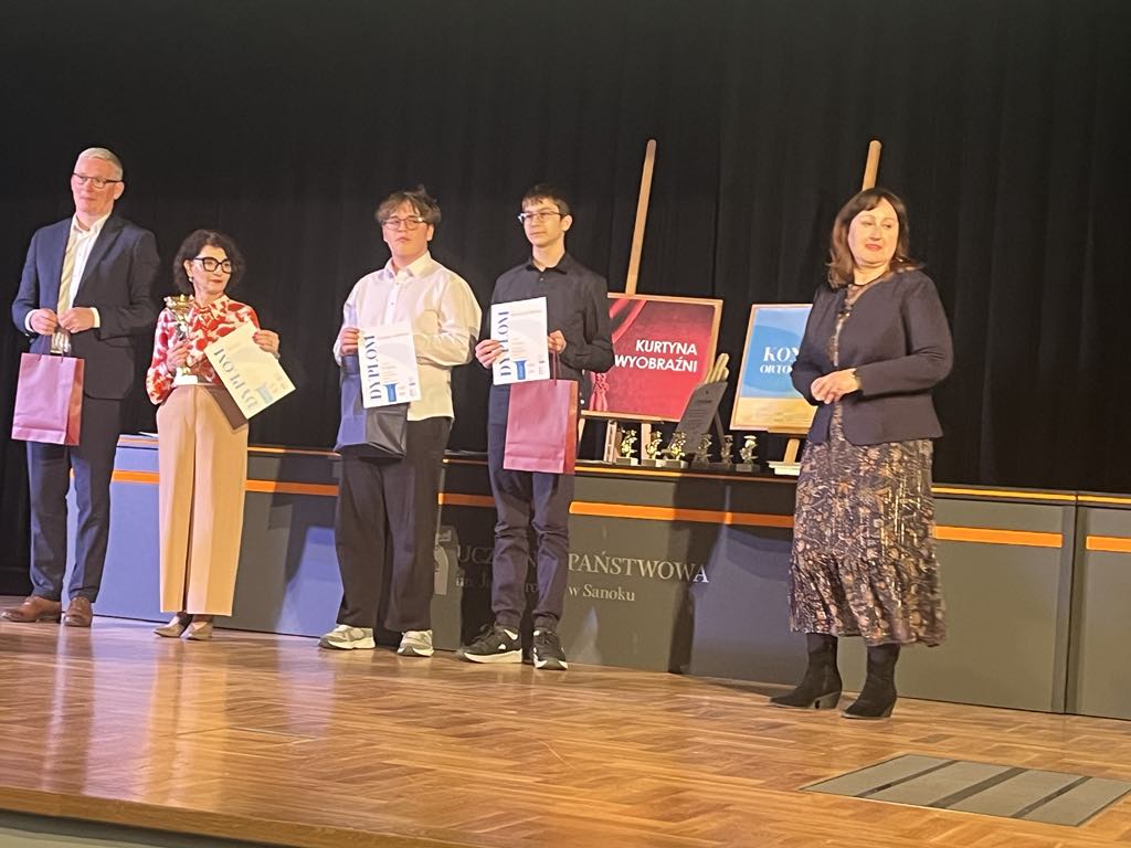W dniu 21.04.2026 r. w Uczelni Państwowej im. Jana Grodka w Sanoku zostały wręczone nagrody laureatom wojewódzkich konkursów: wiedzy o teatrze, plastycznego i informatyczno-ortograficznego.