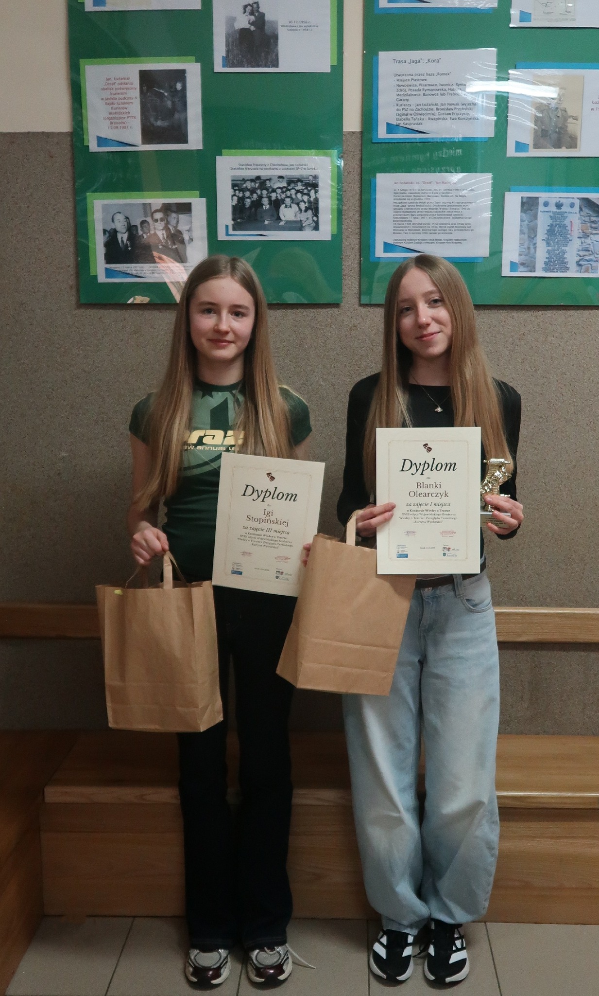 W konkursie teatralnym „Kurtyna wyobraźni” w kat. klas IV-VI – I miejsce zdobyła Blanka Olearczyk, miejsce III przypadło Idze Stapińskiej, w kategorii klas VII-VIII wzięły udział Vanessa Folta i Ewa Gierula, Ewa zdobyła II miejsce.