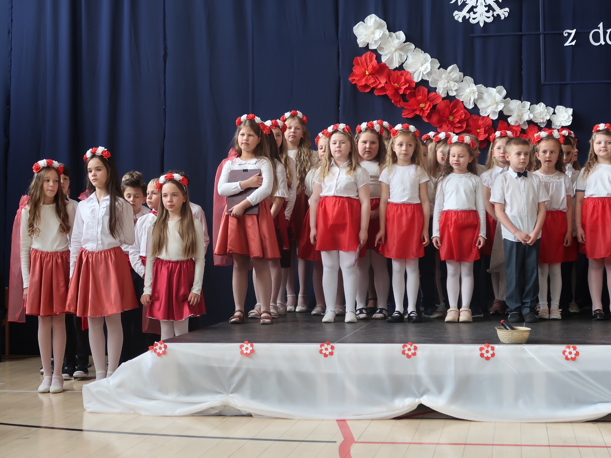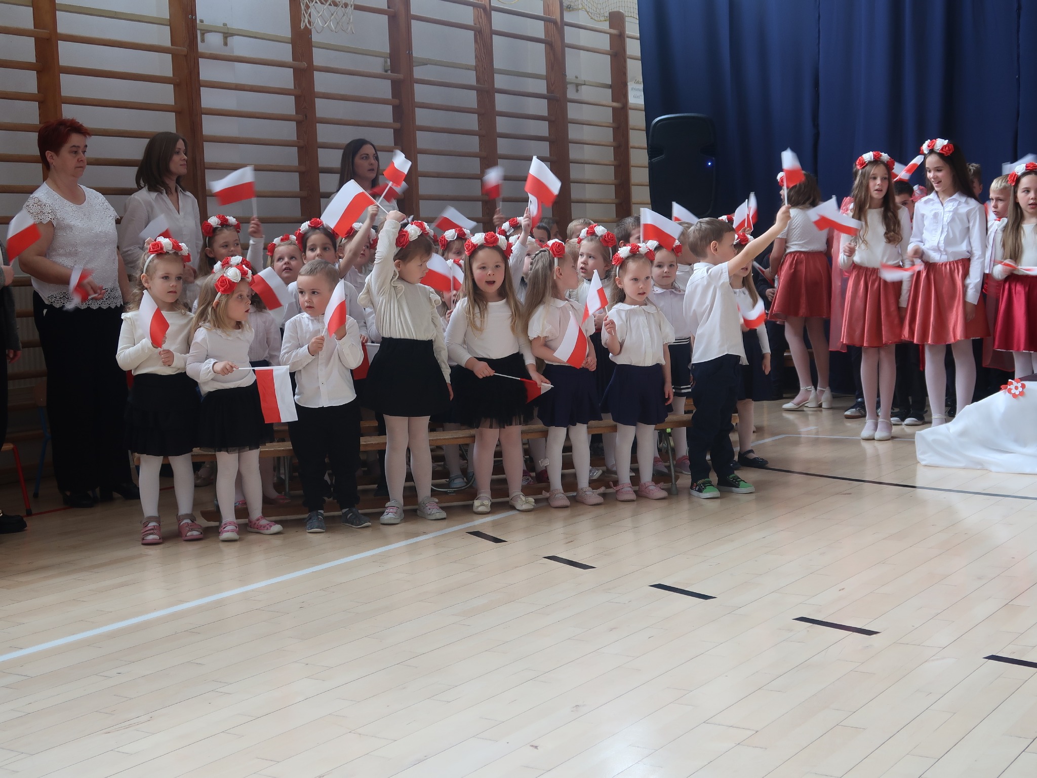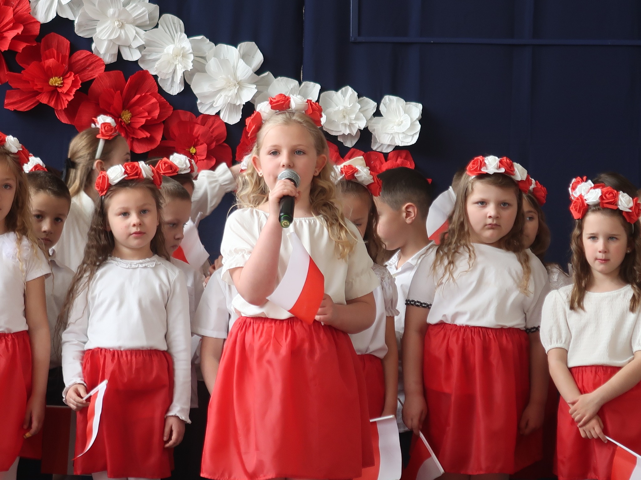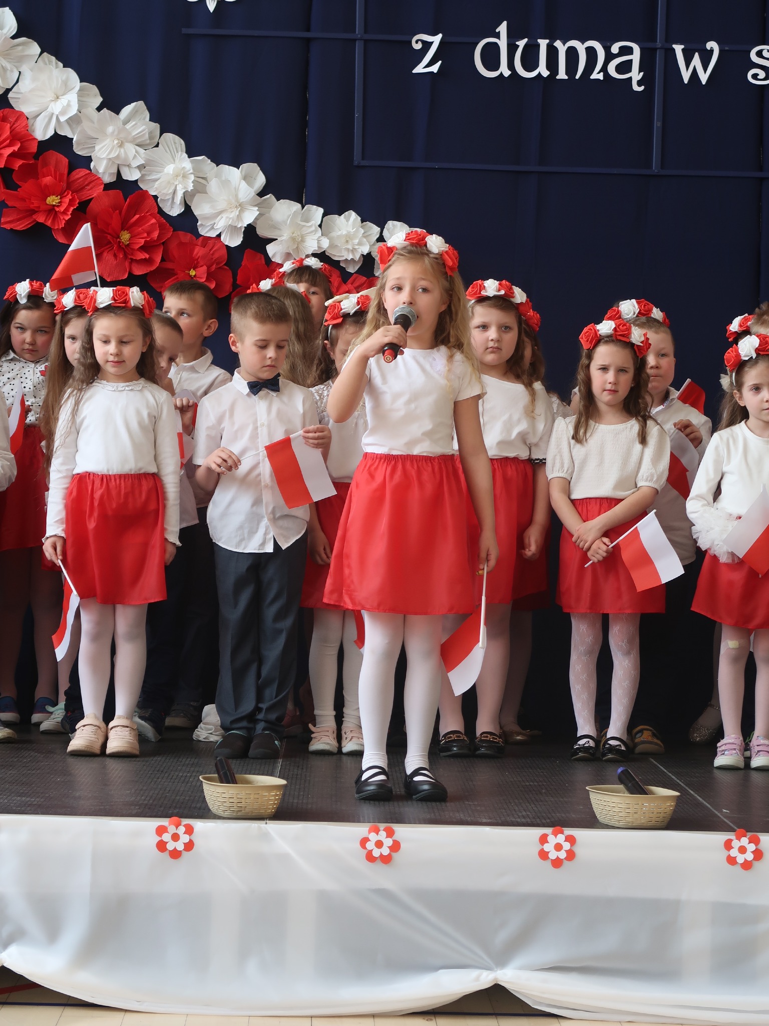 Uczniowie klas I-IV i dzieci z oddziałów przedszkolnych w pięknych strojach z biało – czerwonymi chorągiewkami w ręku demonstrowali swój patriotyzm. Młodzi artyści zaprezentowali wzruszający montaż słowno-muzyczny, w trakcie którego nie zabrakło tematycznych piosenek oraz wspaniale odtańczonego poloneza. Była to niezwykła lekcja historii oraz świadectwo świadomości patriotycznej młodego pokolenia. Bardzo dziękujemy wszystkim gościom za obecność.🤍❤️