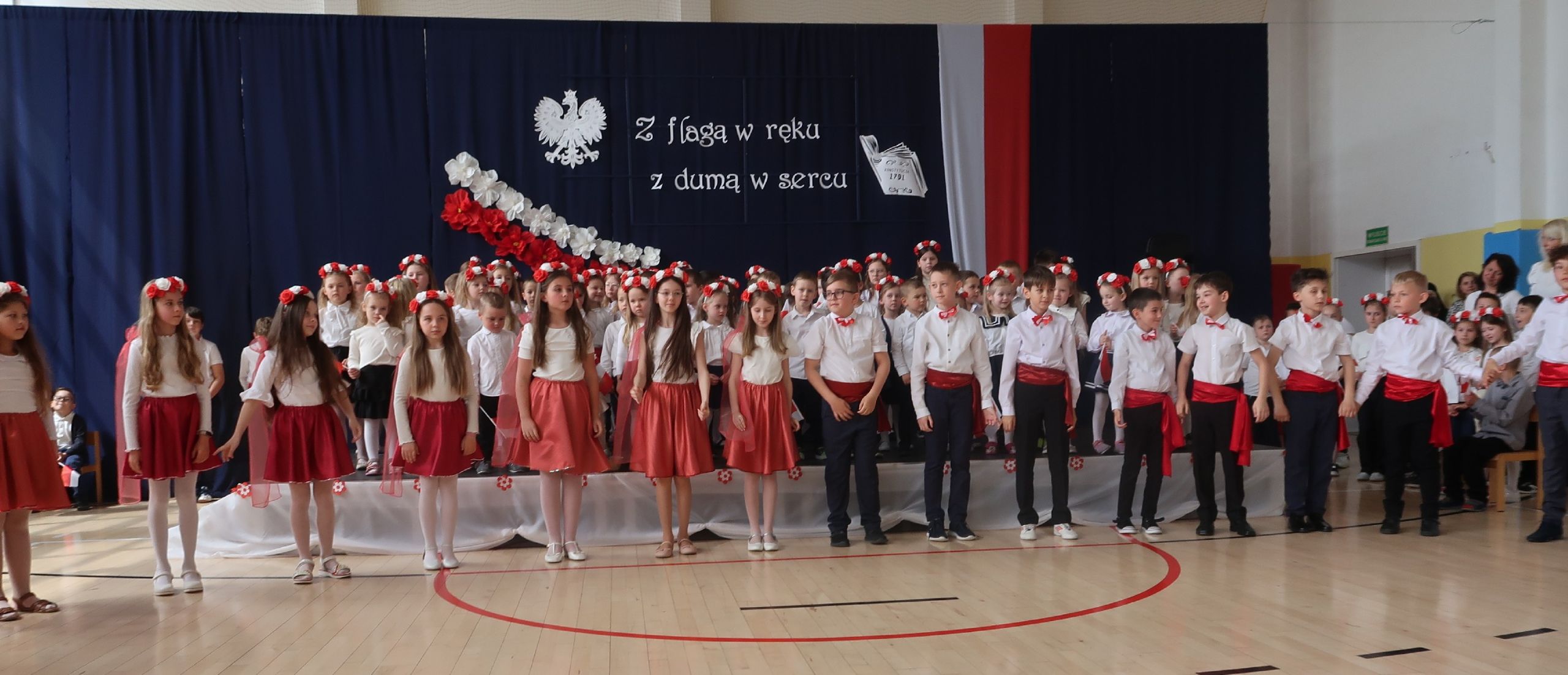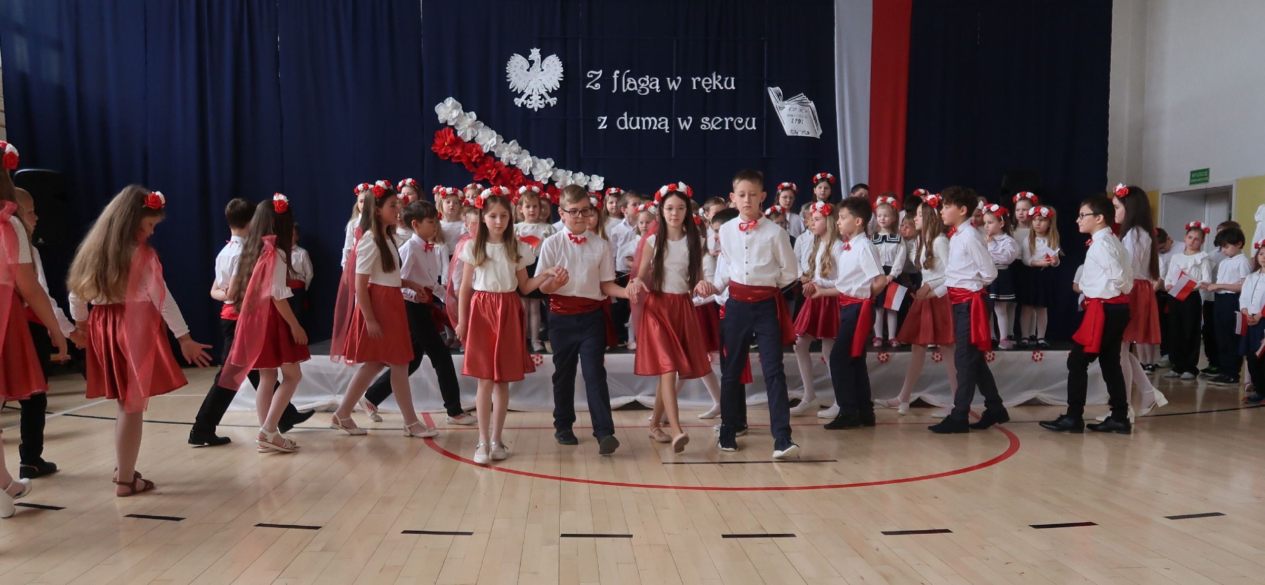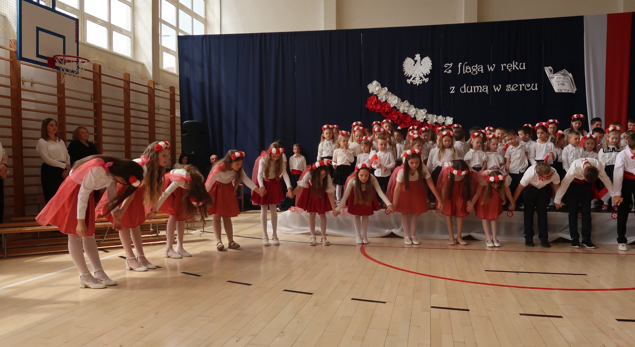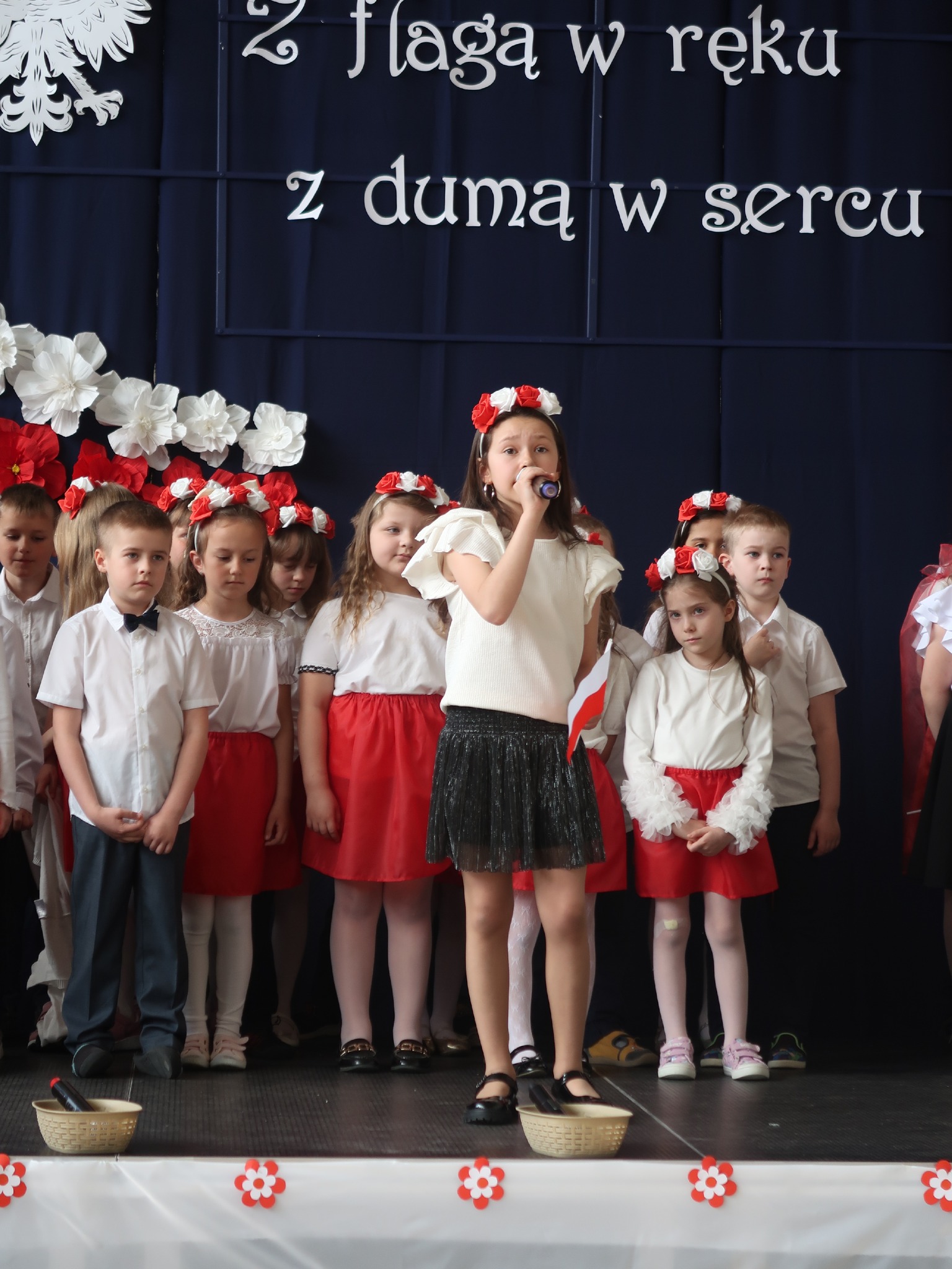 Uczniowie klas I-IV i dzieci z oddziałów przedszkolnych w pięknych strojach z biało – czerwonymi chorągiewkami w ręku demonstrowali swój patriotyzm. Młodzi artyści zaprezentowali wzruszający montaż słowno-muzyczny, w trakcie którego nie zabrakło tematycznych piosenek oraz wspaniale odtańczonego poloneza. Była to niezwykła lekcja historii oraz świadectwo świadomości patriotycznej młodego pokolenia. Bardzo dziękujemy wszystkim gościom za obecność.🤍❤️