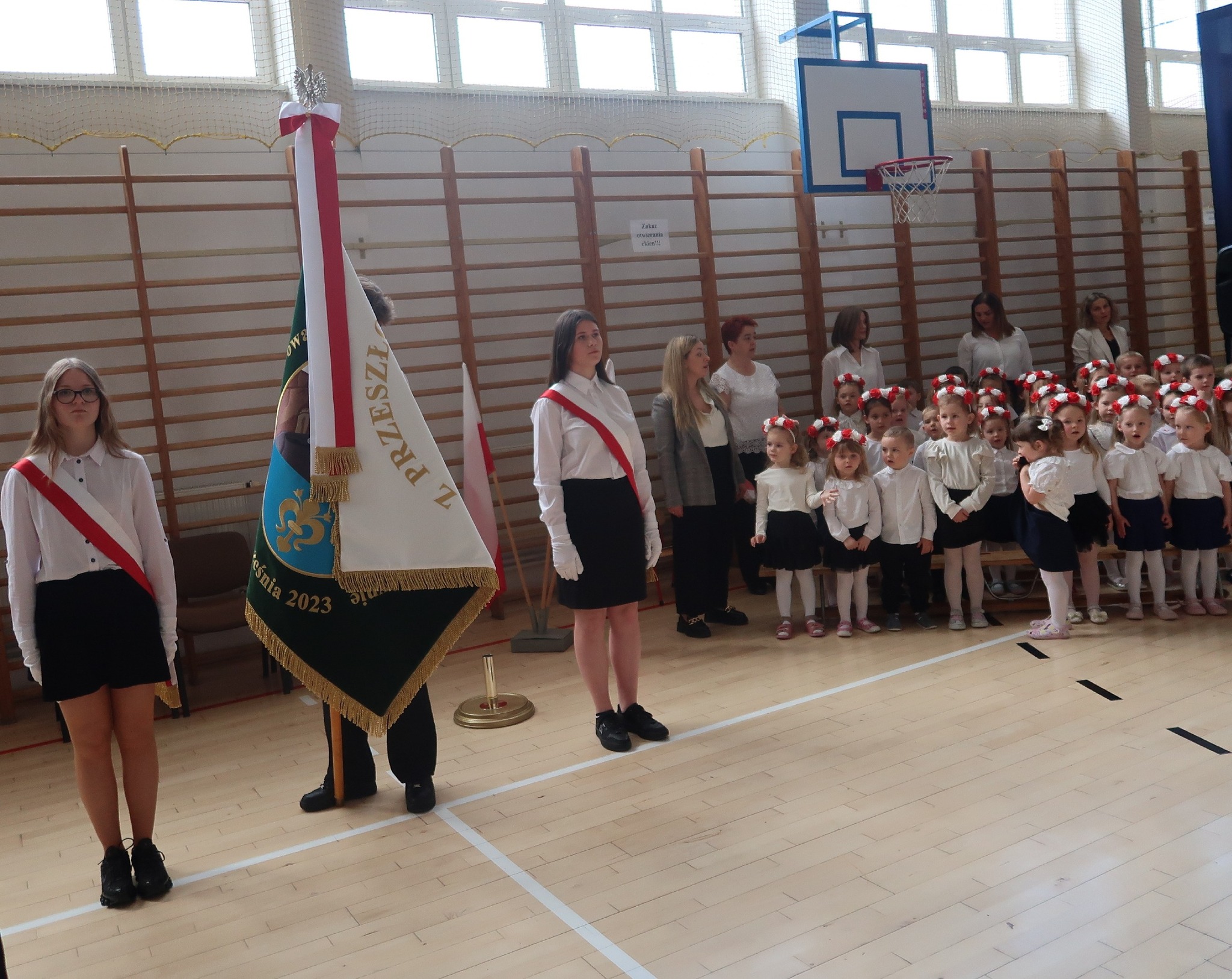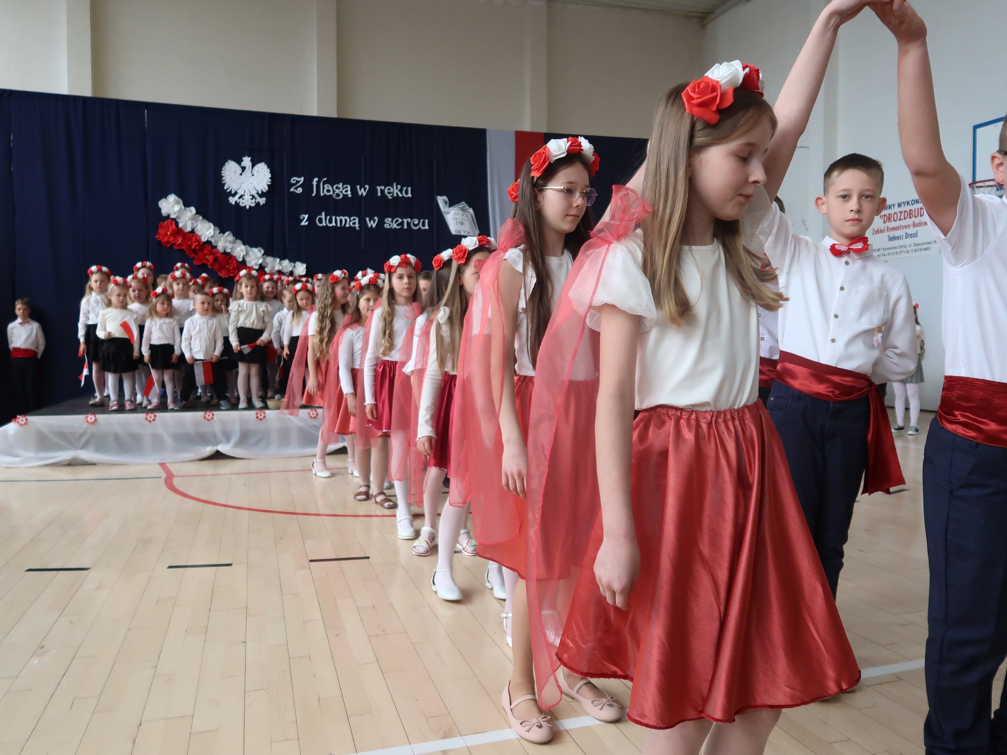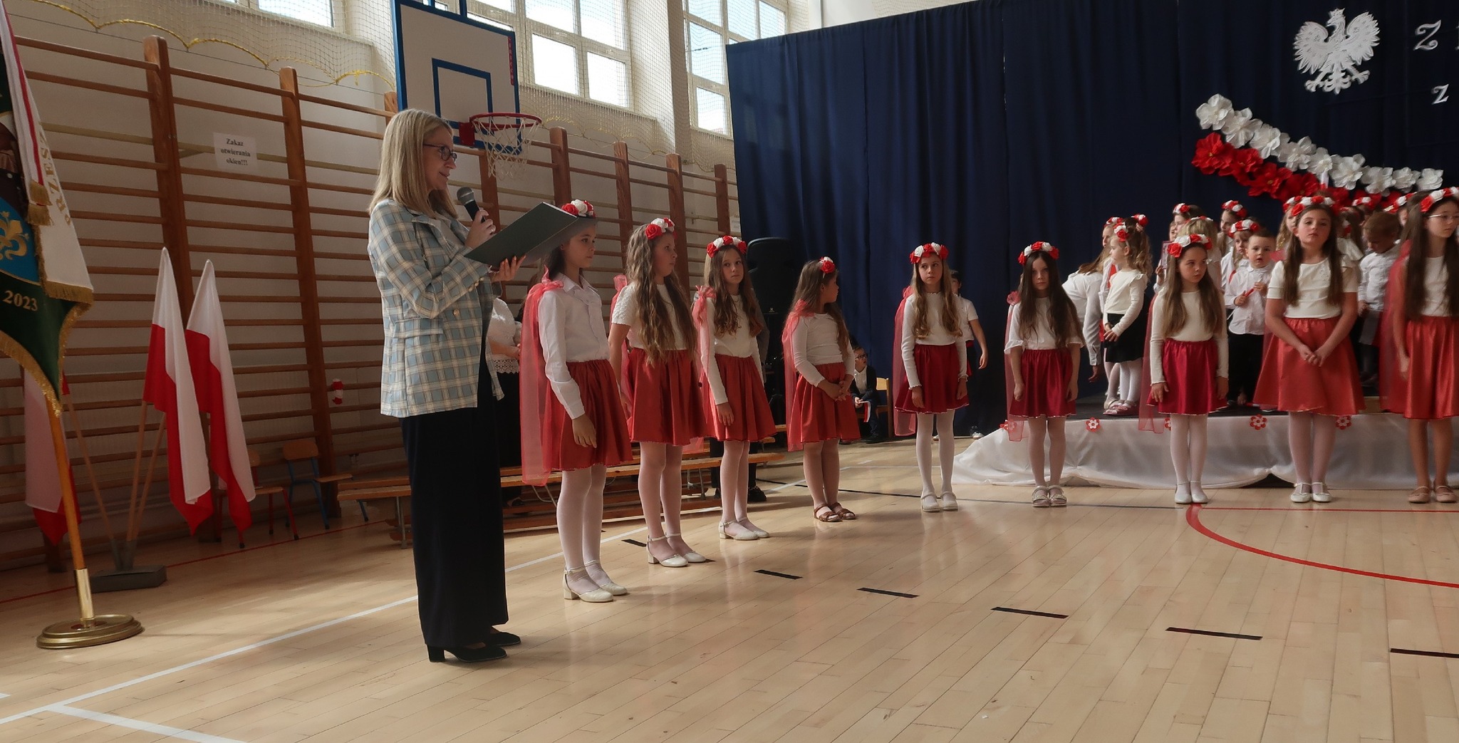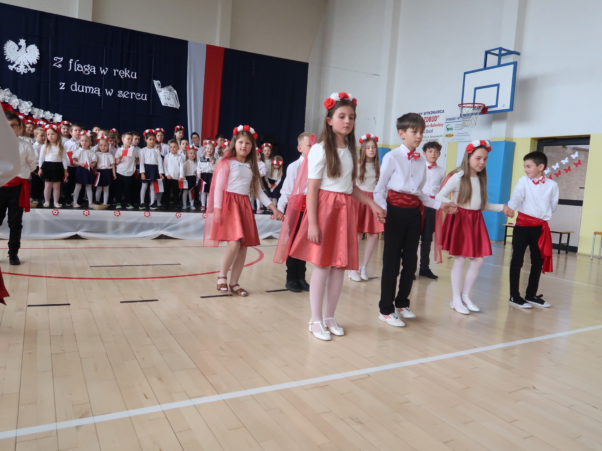 Uczniowie klas I-IV i dzieci z oddziałów przedszkolnych w pięknych strojach z biało – czerwonymi chorągiewkami w ręku demonstrowali swój patriotyzm. Młodzi artyści zaprezentowali wzruszający montaż słowno-muzyczny, w trakcie którego nie zabrakło tematycznych piosenek oraz wspaniale odtańczonego poloneza. Była to niezwykła lekcja historii oraz świadectwo świadomości patriotycznej młodego pokolenia. Bardzo dziękujemy wszystkim gościom za obecność.🤍❤️